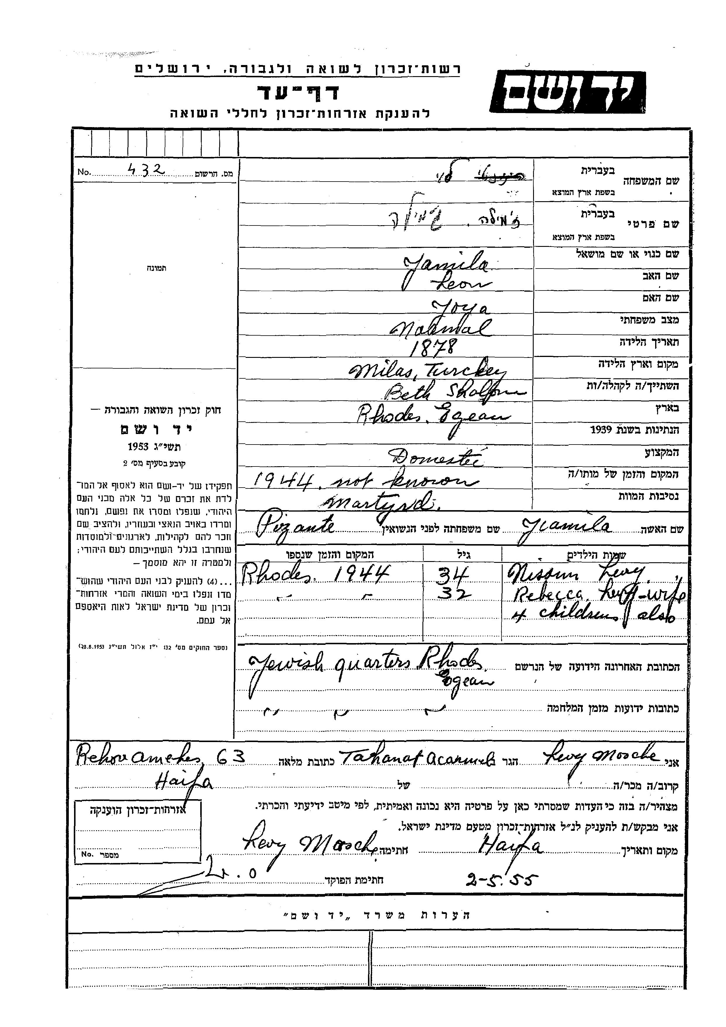 Yad Vashem - Pages of Testimony Names Memorial Collection