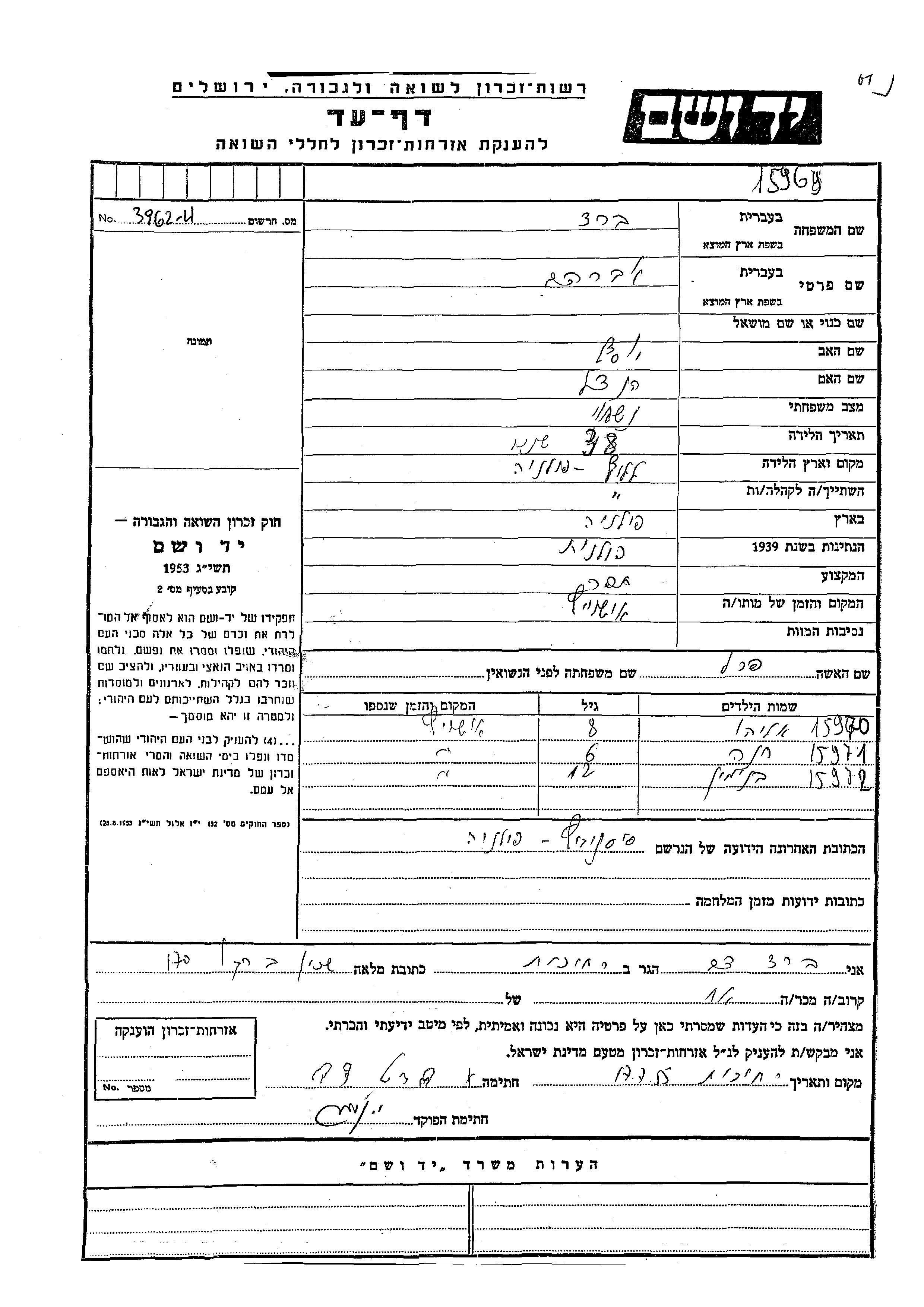 Yad Vashem - Pages of Testimony Names Memorial Collection