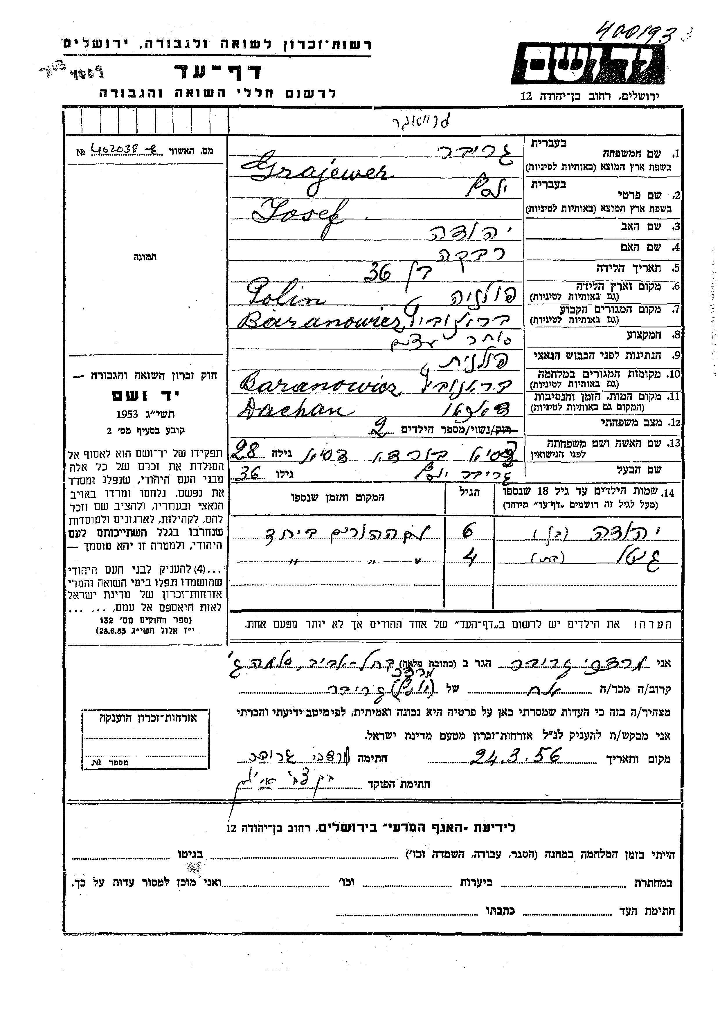 Yad Vashem - Pages of Testimony Names Memorial Collection