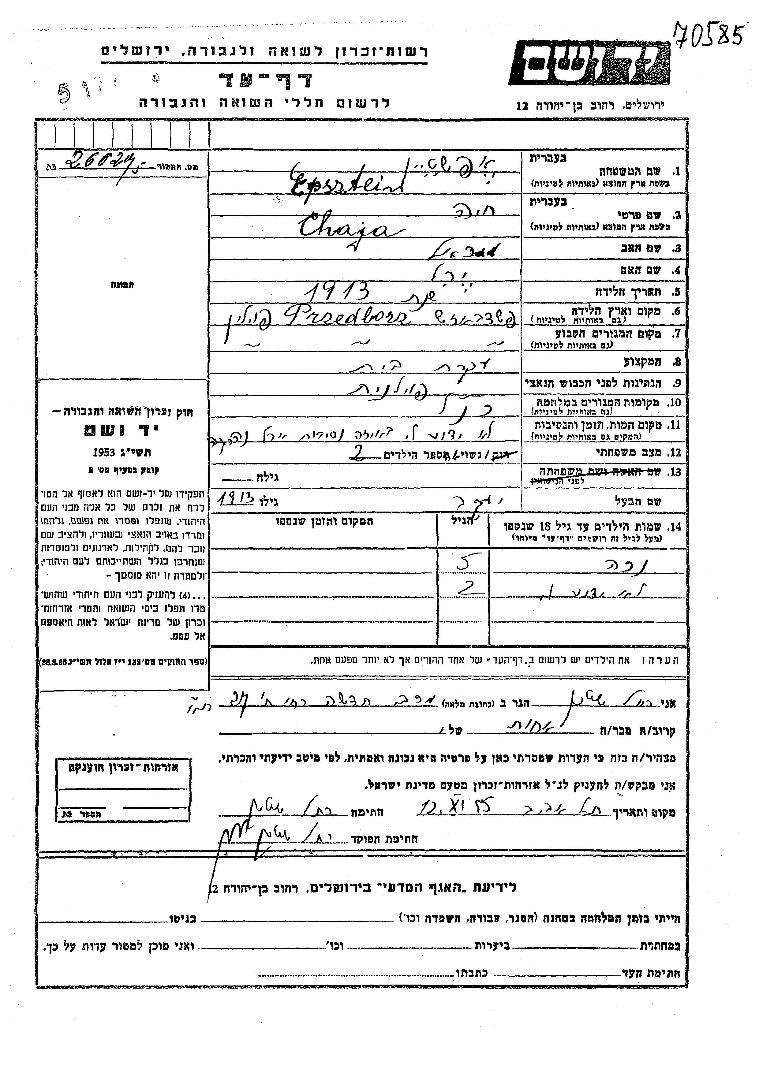 Epshtein prénom inconnu endroit inconnu, Feuille de témoignage