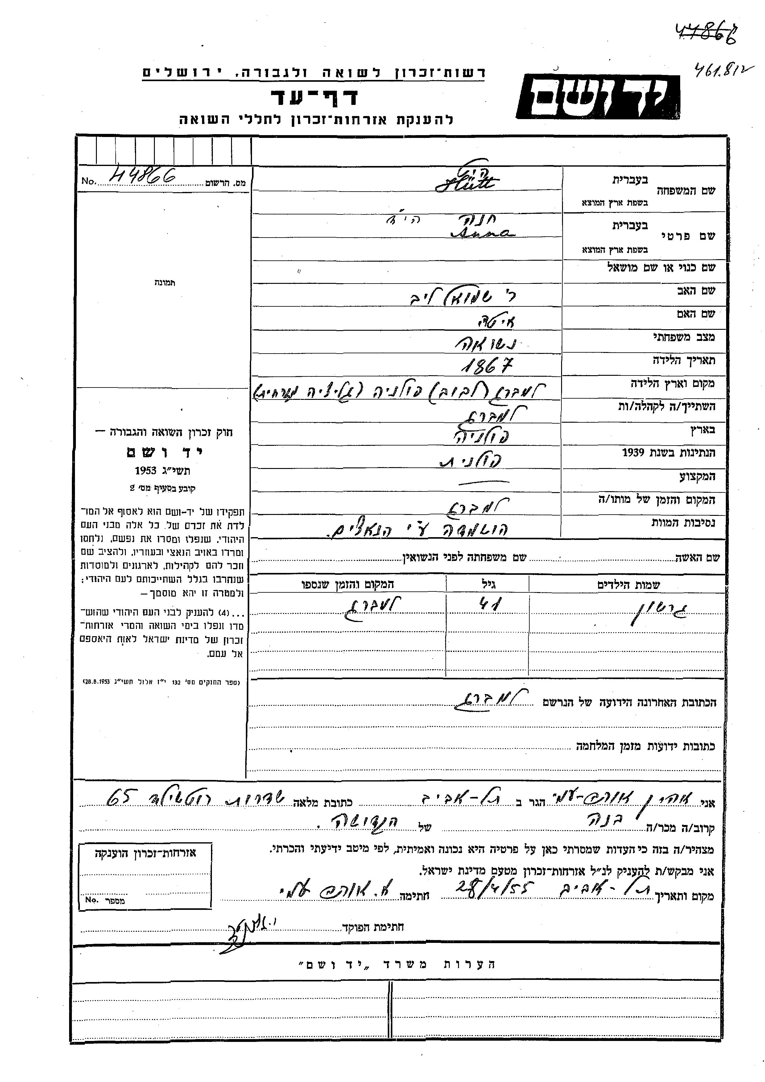 Yad Vashem - Pages of Testimony Names Memorial Collection