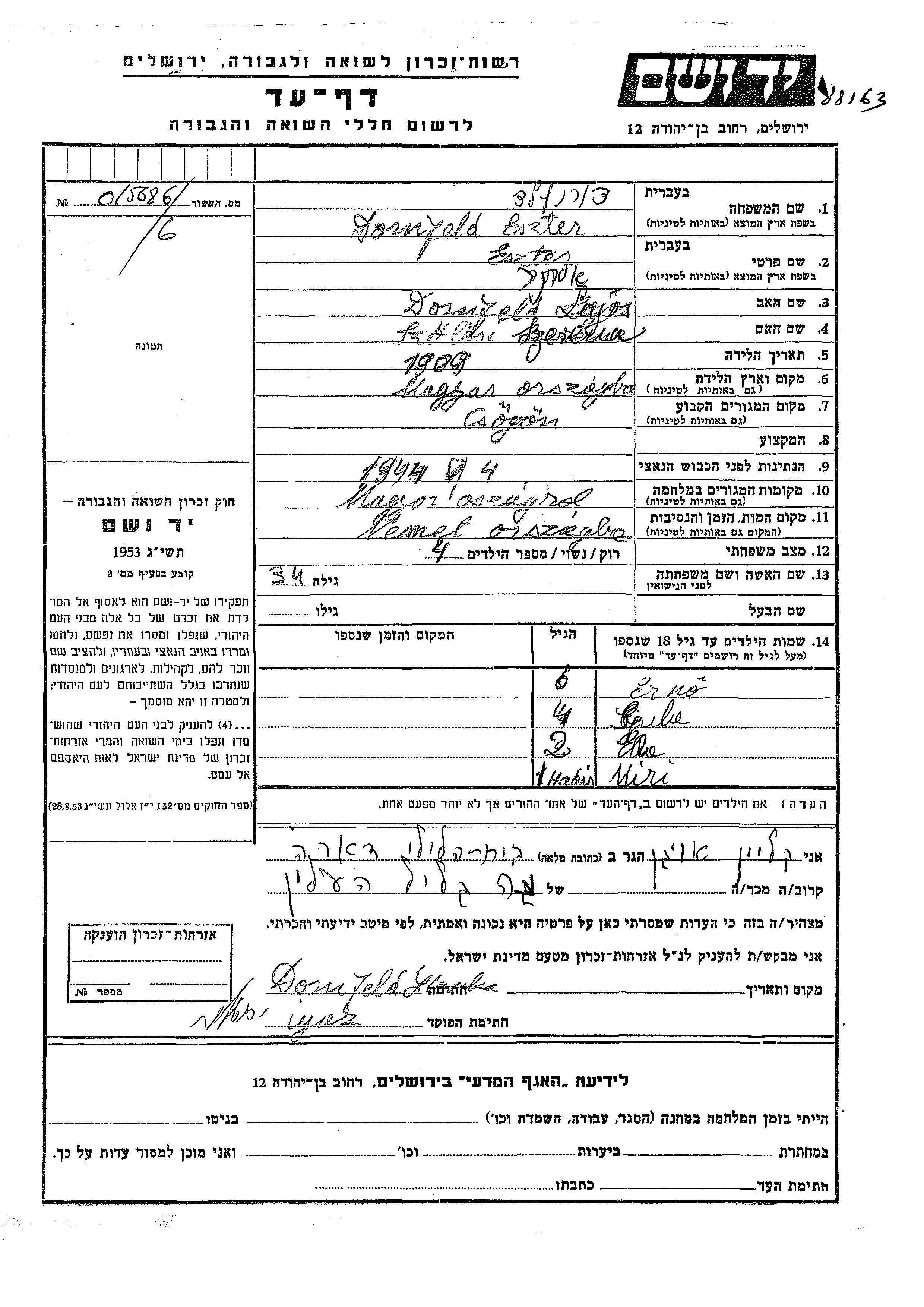 Yad Vashem - Pages of Testimony Names Memorial Collection