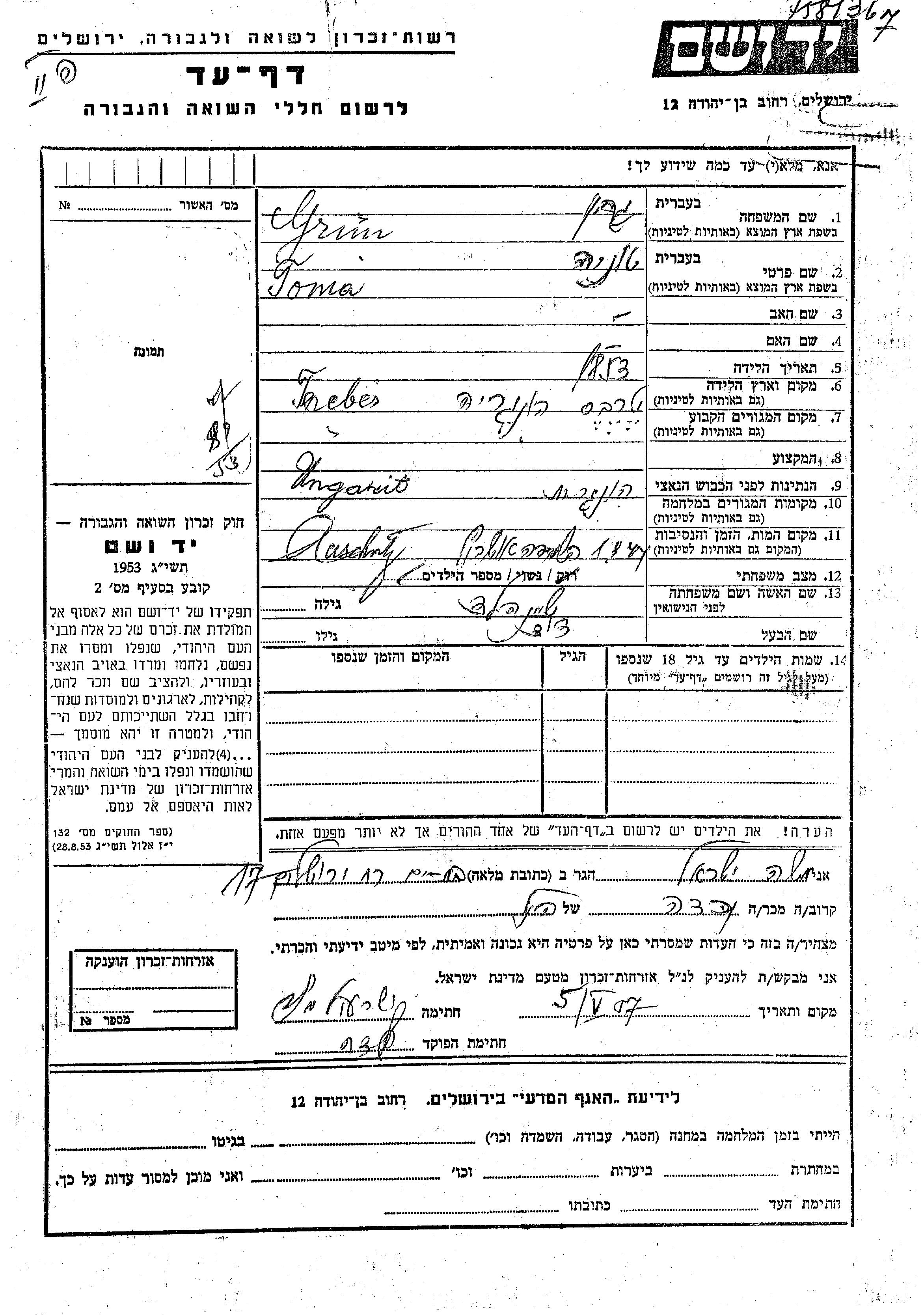Yad Vashem - Pages of Testimony Names Memorial Collection