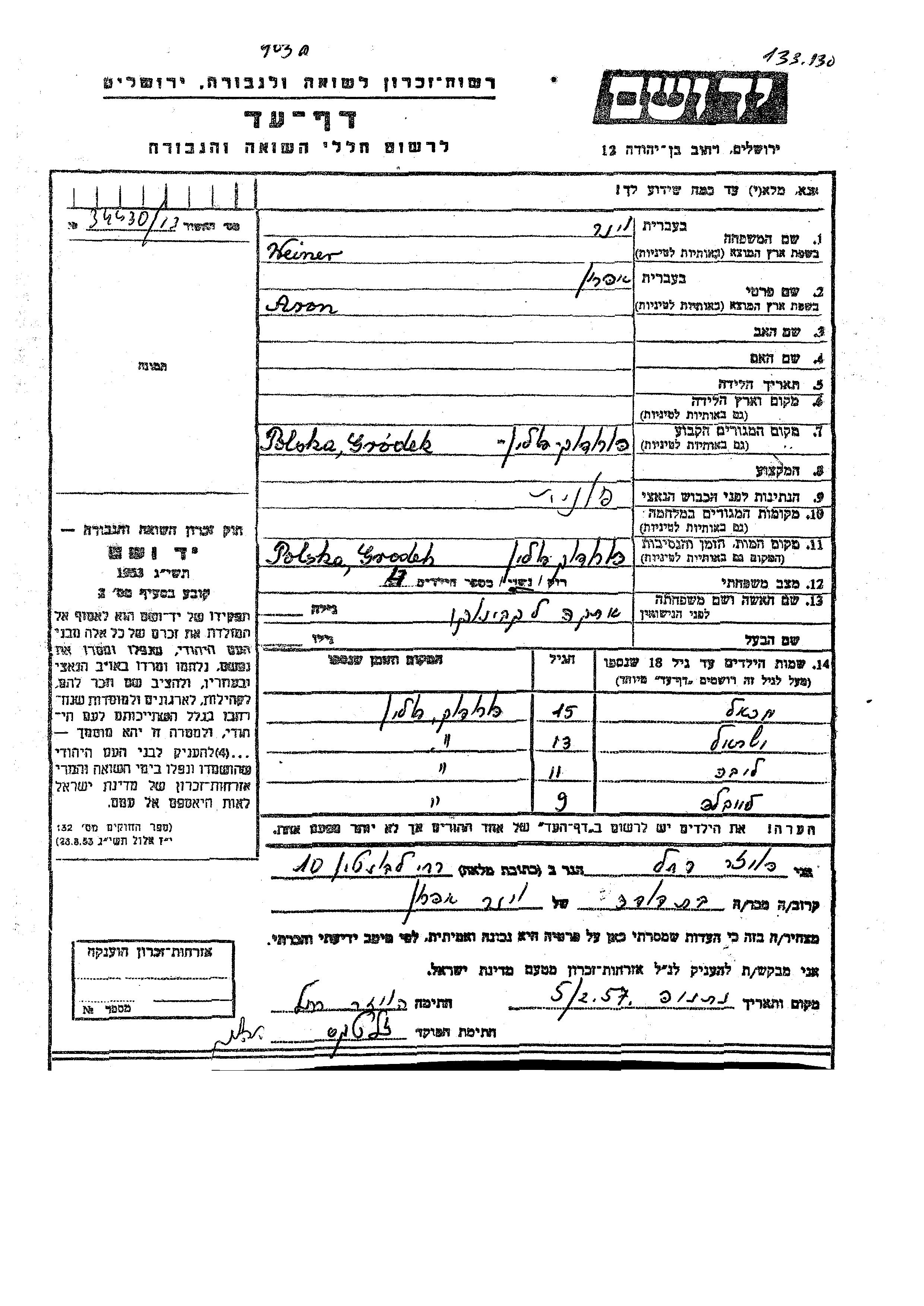 Weiner Viner Liba Horodok, Pologne Feuille de témoignage