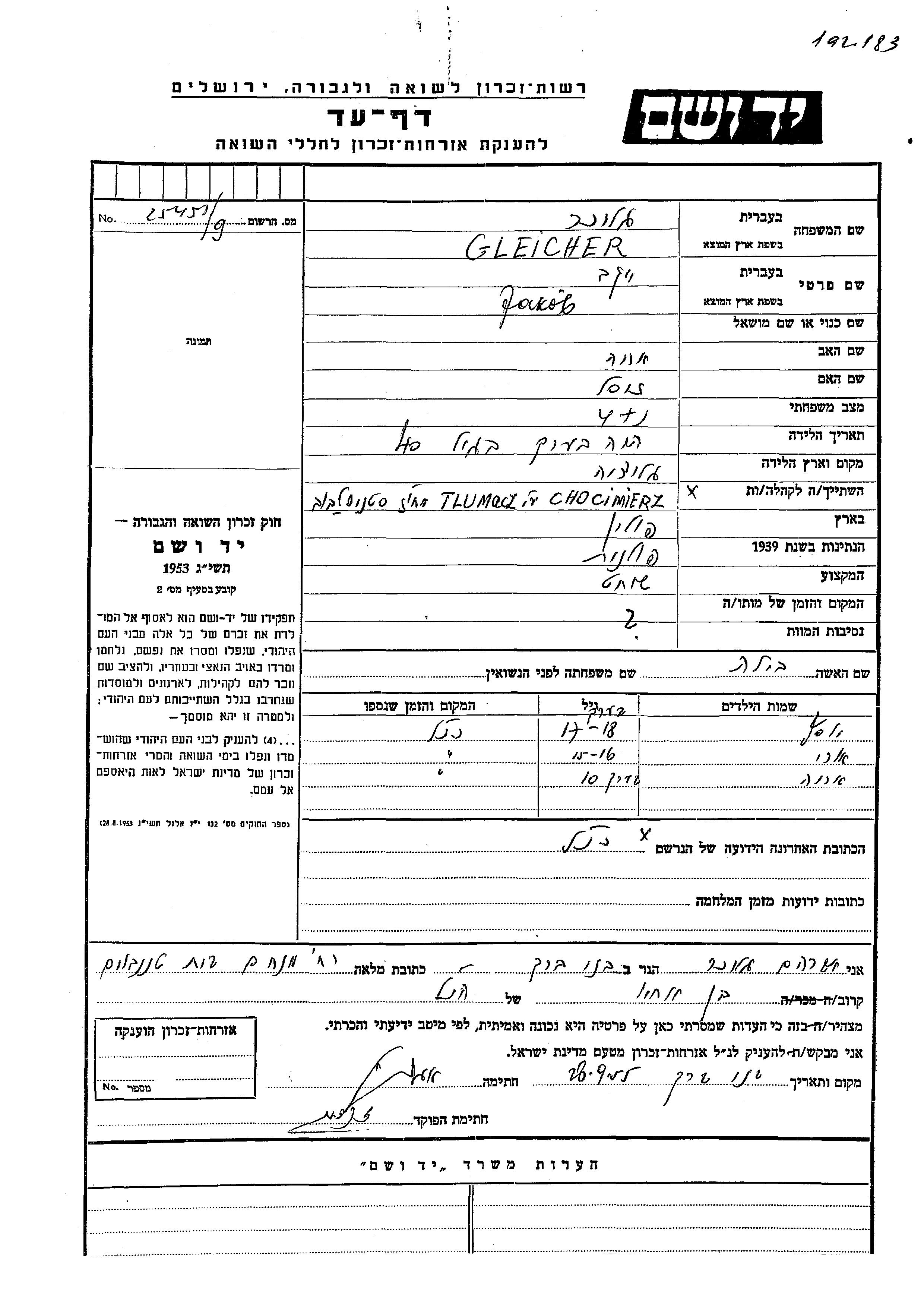 Yad Vashem - Pages of Testimony Names Memorial Collection