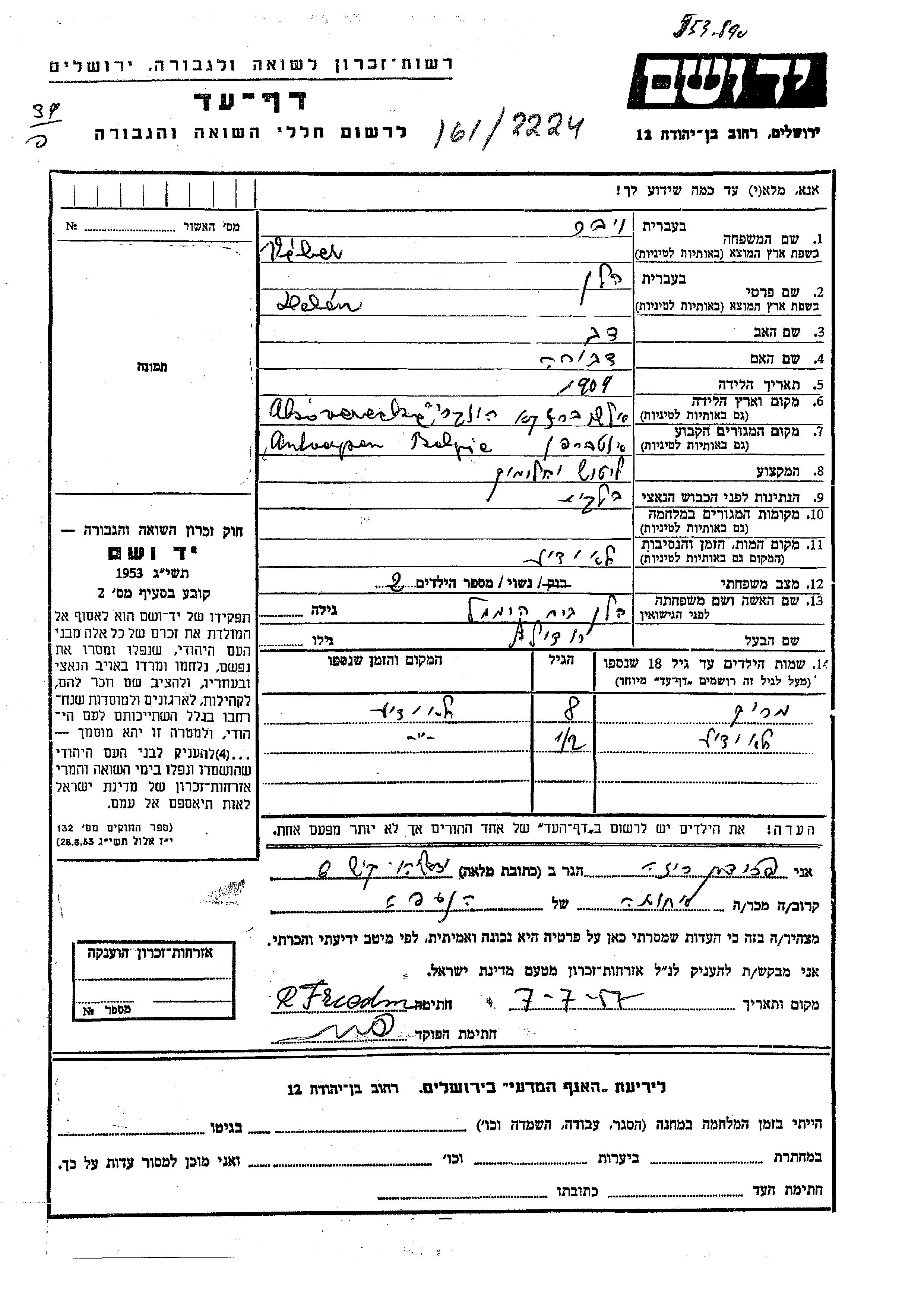 Yad Vashem - Pages of Testimony Names Memorial Collection