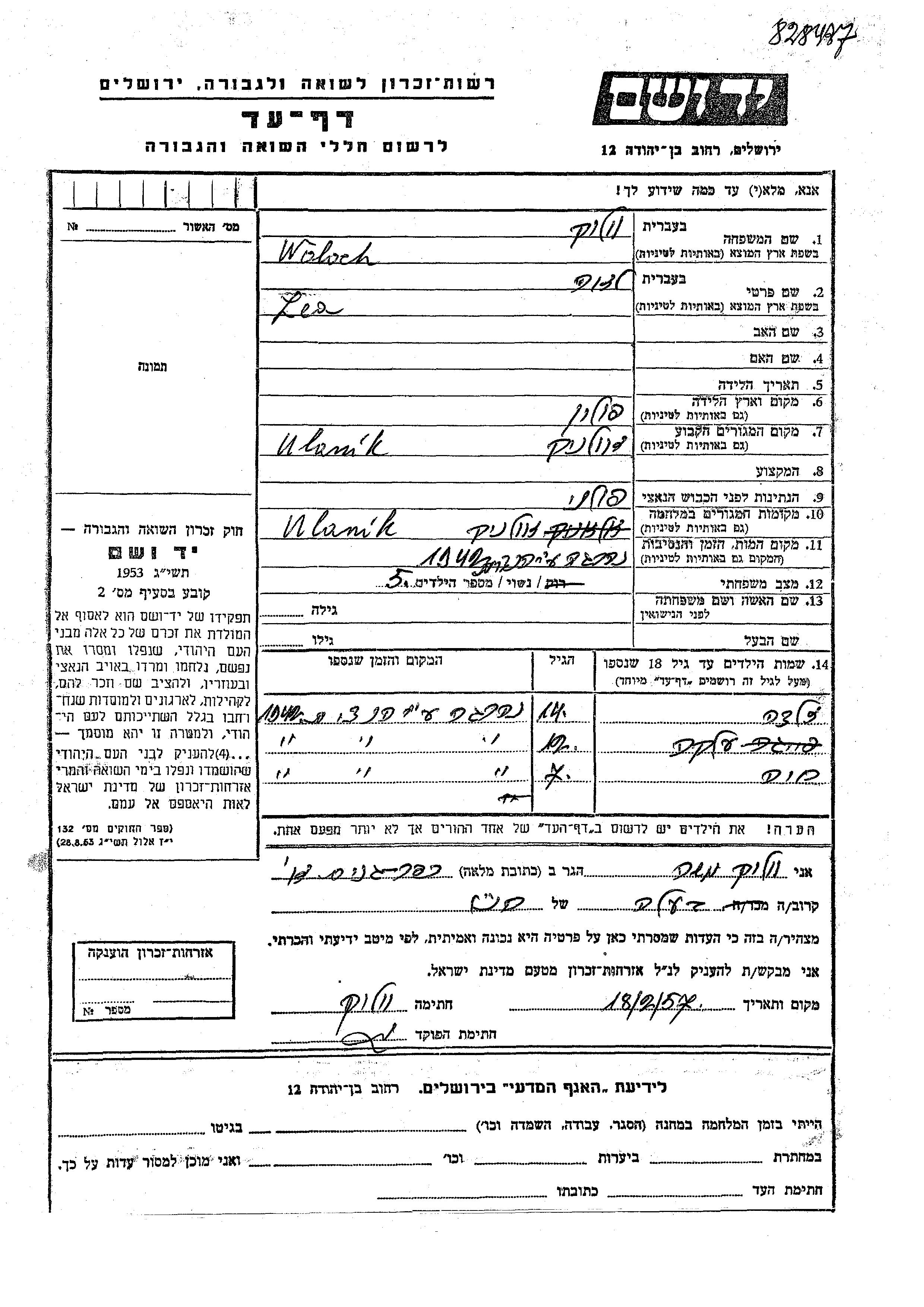 Woloch Khaia Ulaniki, Pologne Feuille de témoignage