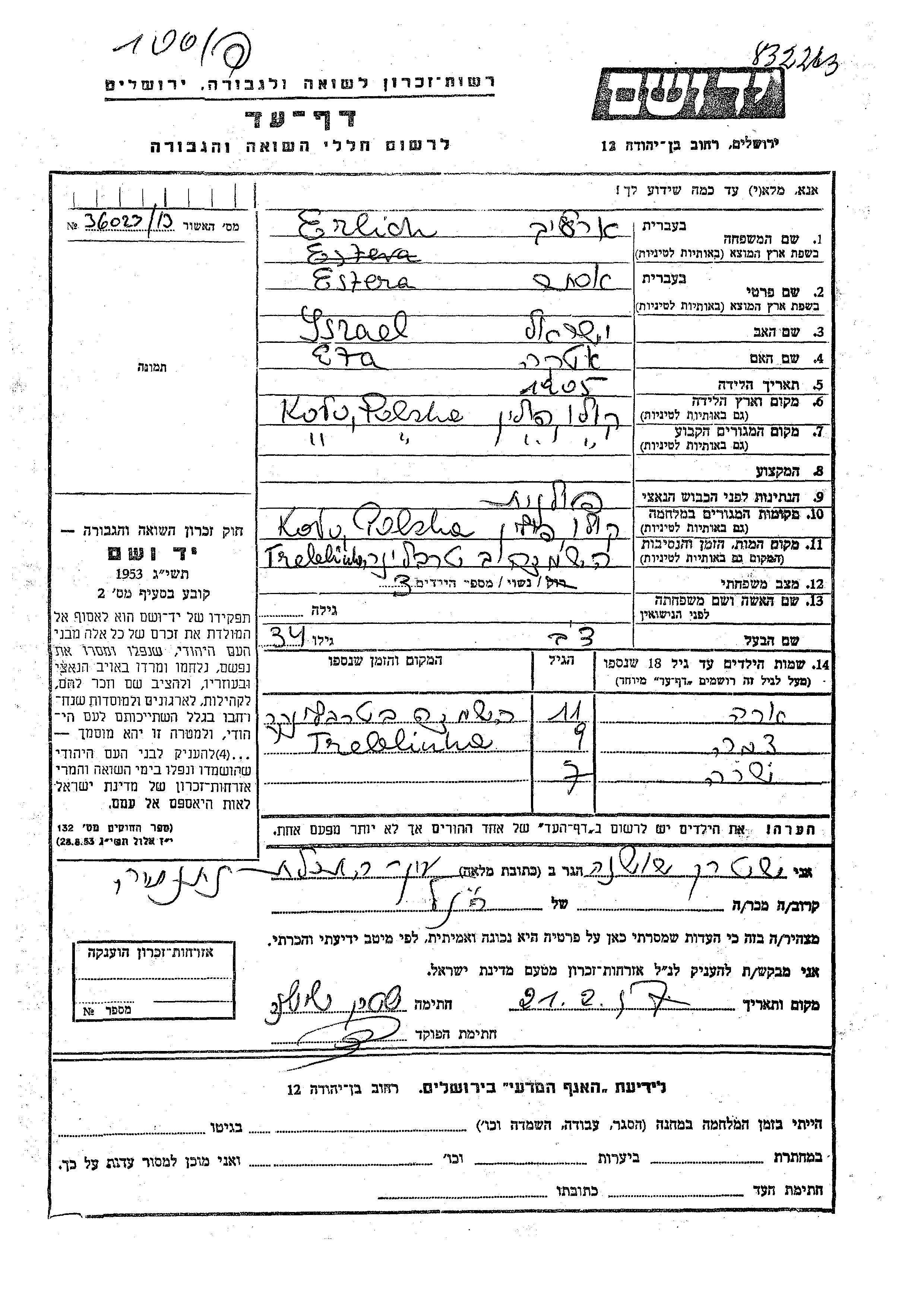 Erlich Era Kolo, Pologne Feuille de témoignage