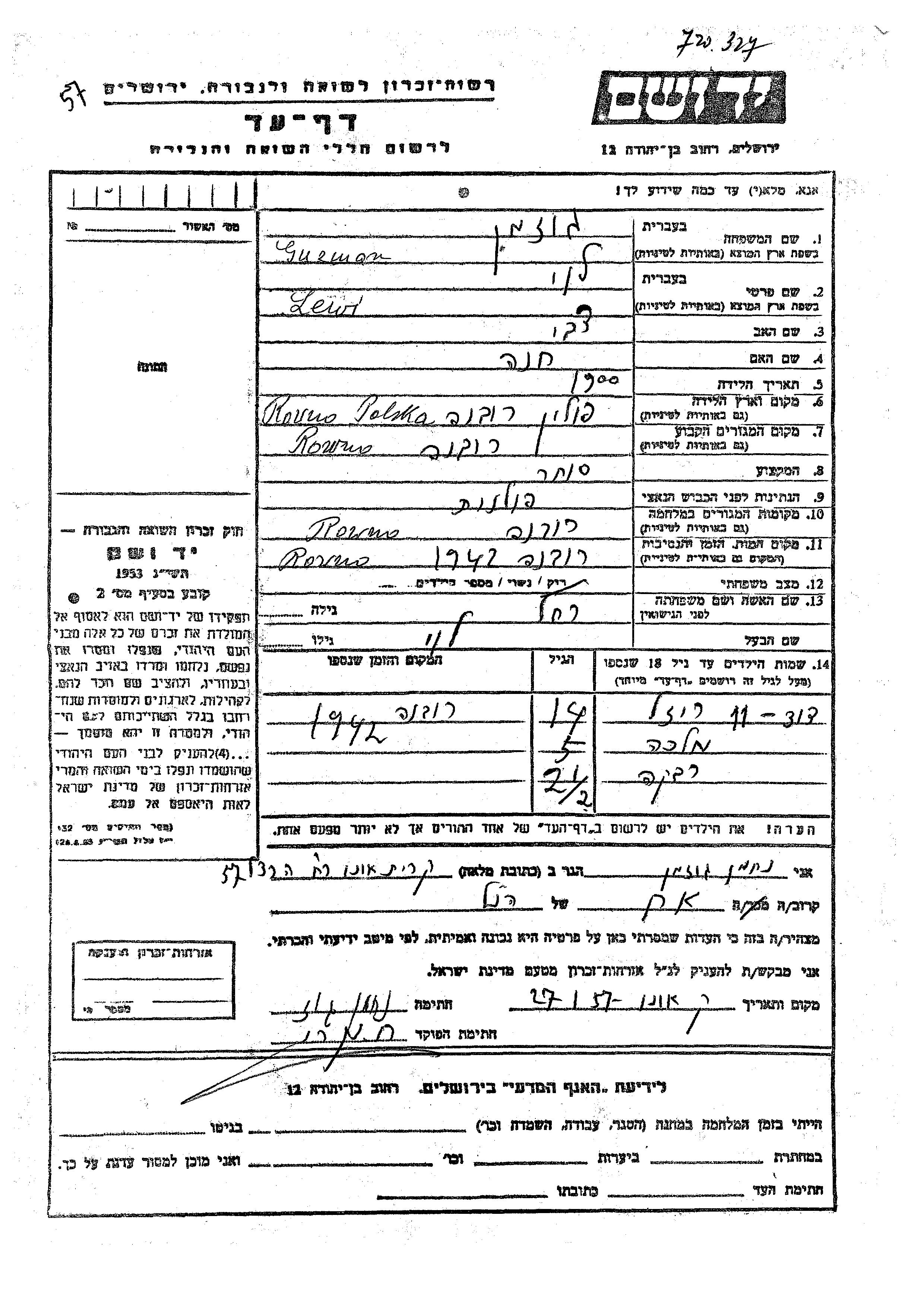 Yad Vashem - Pages of Testimony Names Memorial Collection