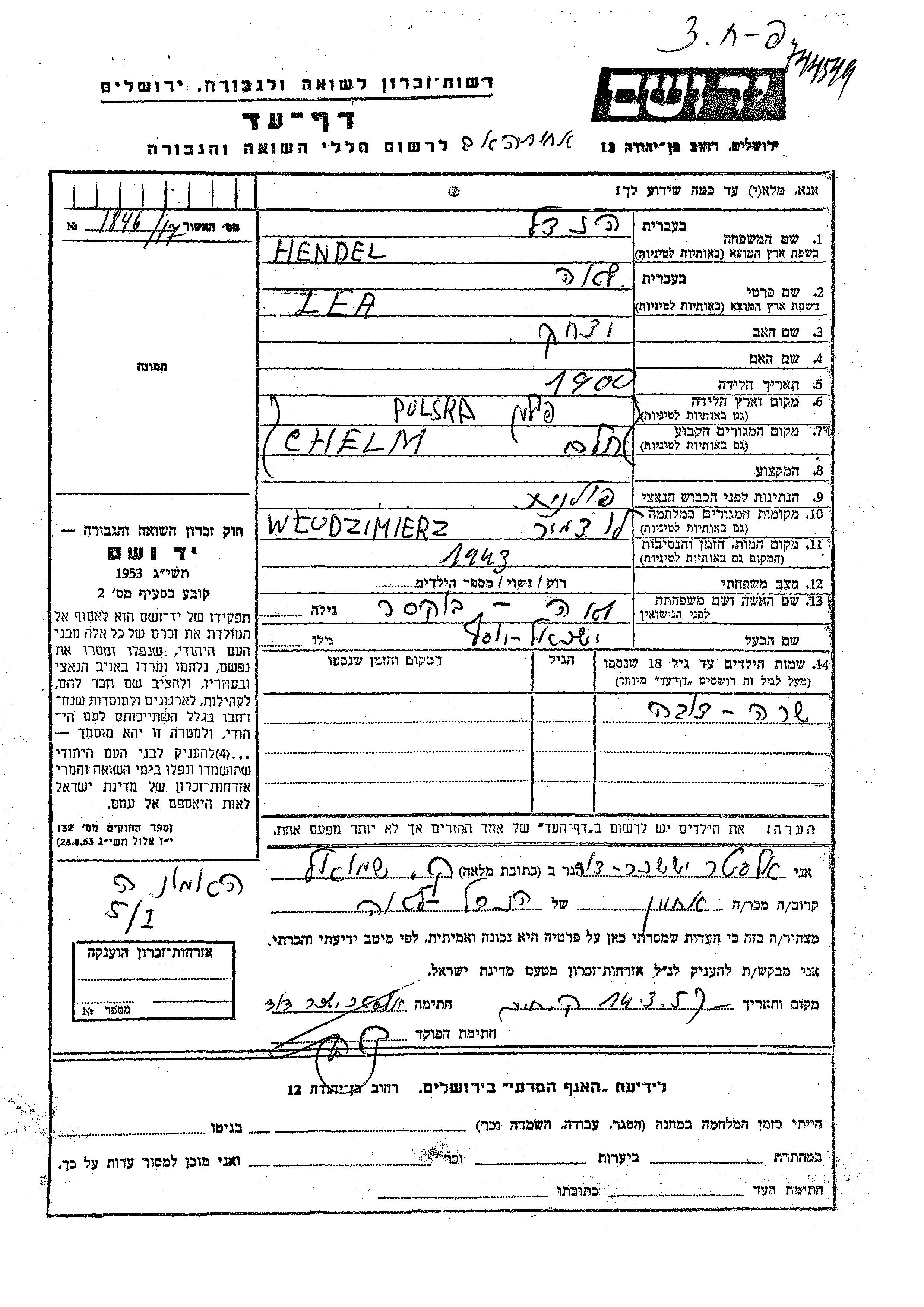 Yad Vashem - Pages of Testimony Names Memorial Collection
