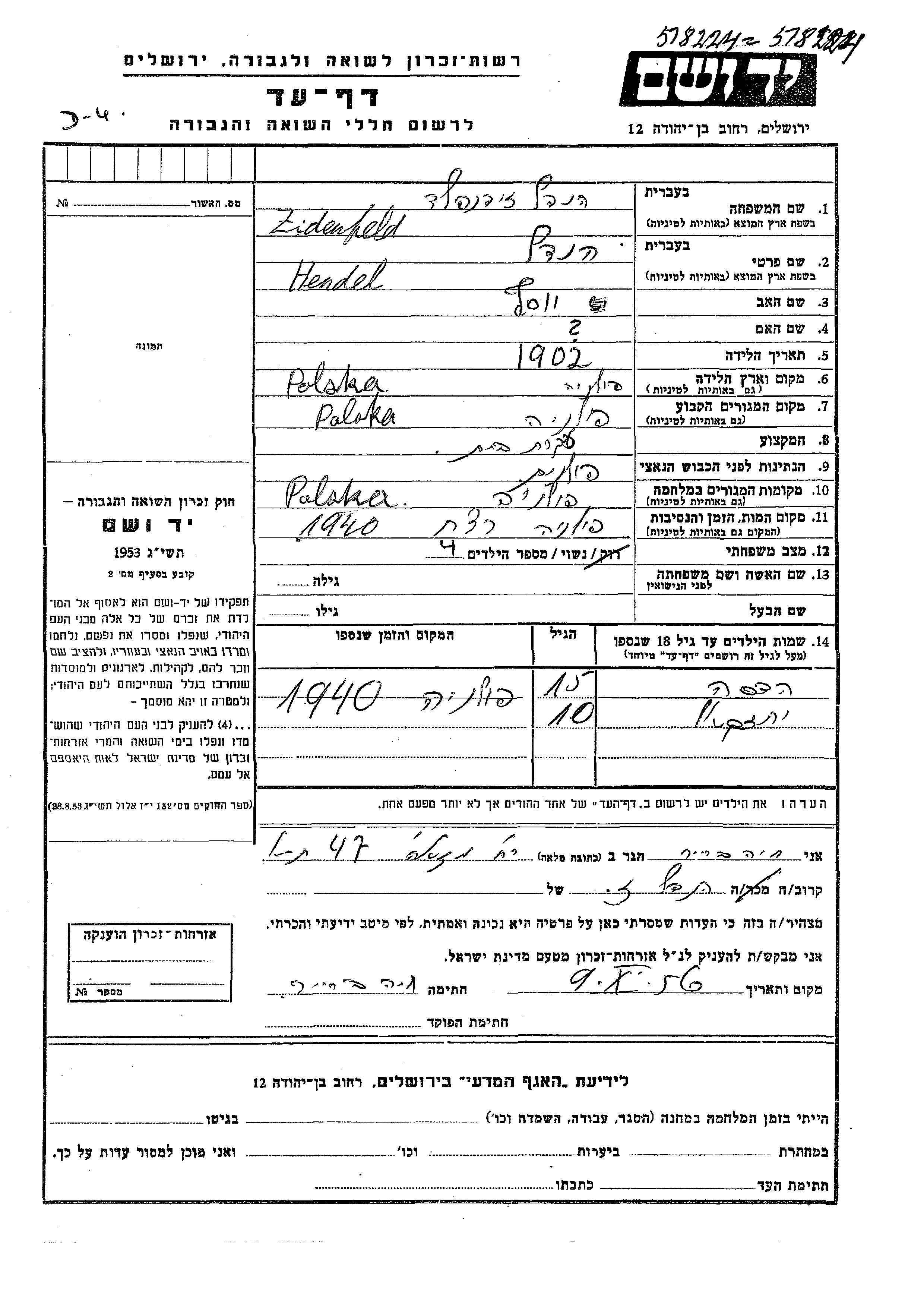Zidenfeld Hadasa Pologne Feuille de témoignage