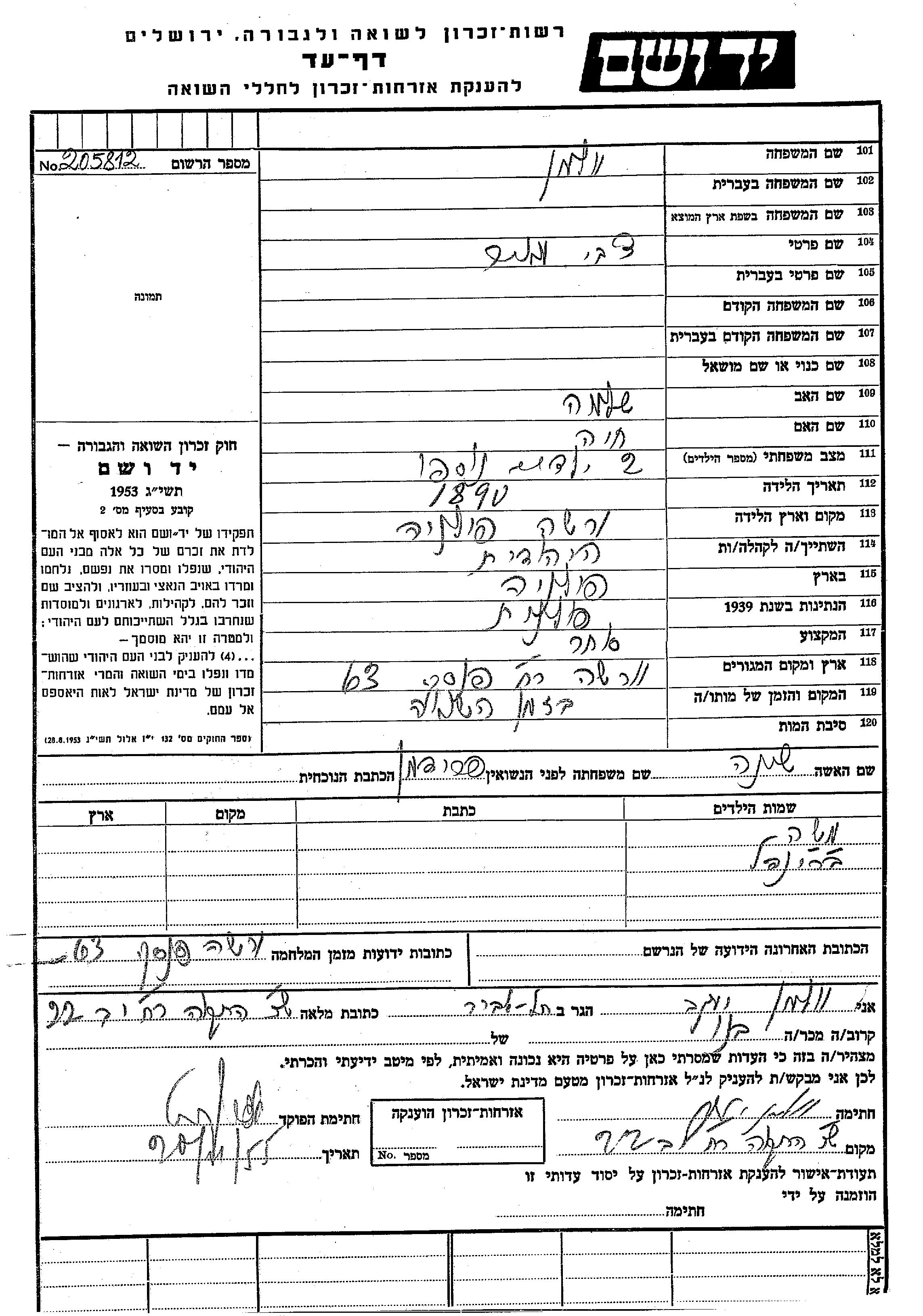 Yad Vashem - Pages of Testimony Names Memorial Collection