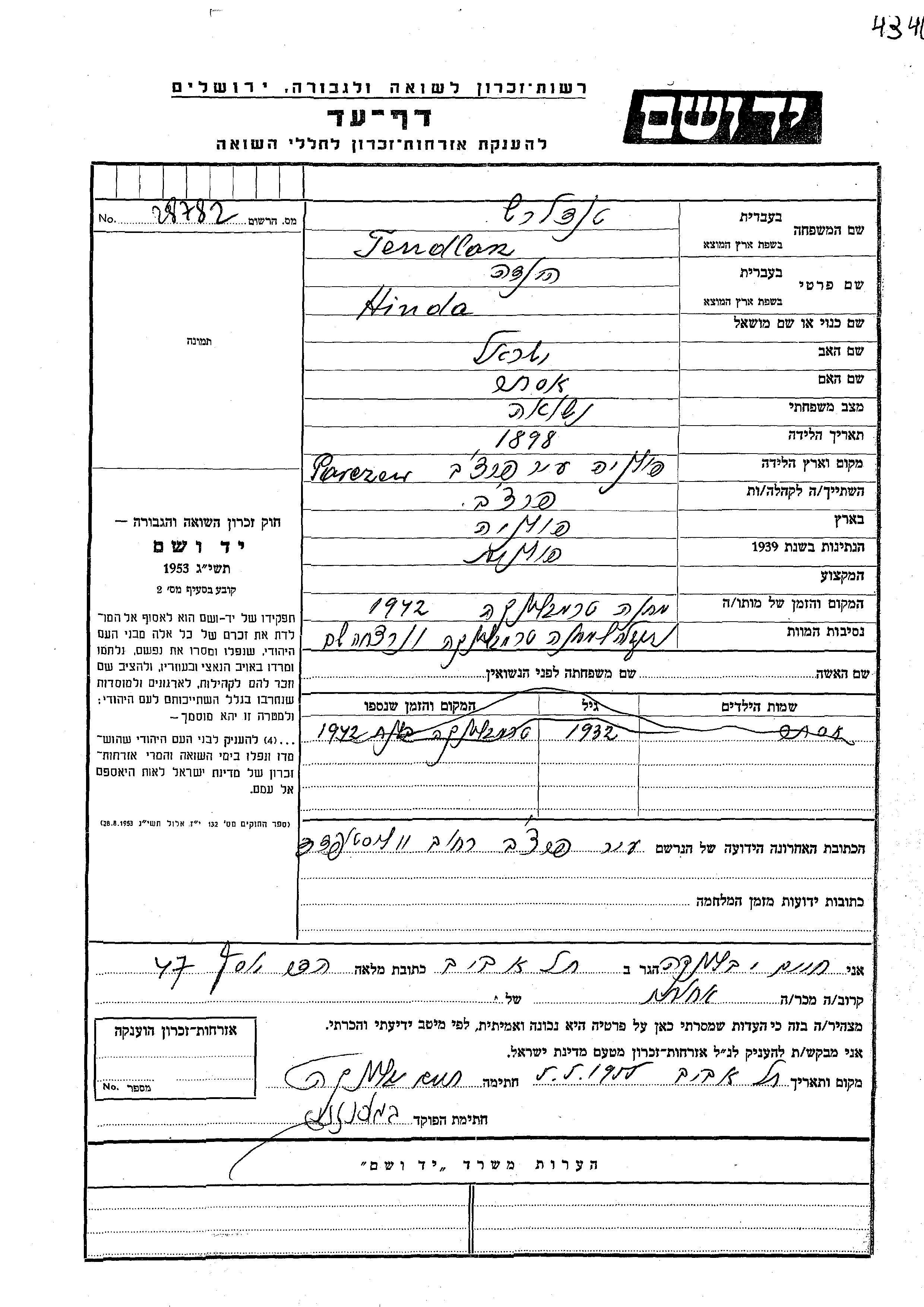 Tendlarz Ester 1932 endroit inconnu, Feuille de témoignage