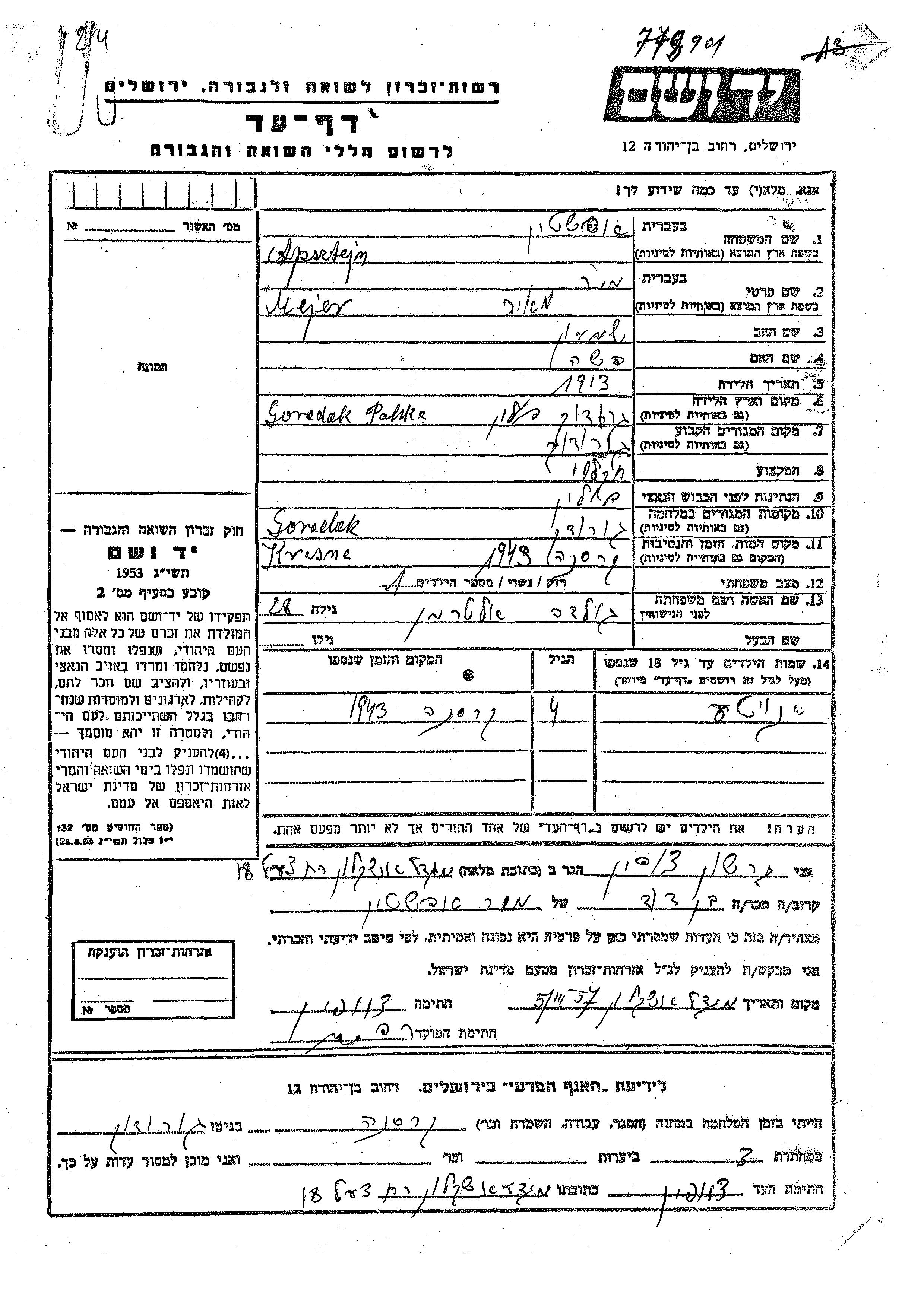 Yad Vashem - Pages of Testimony Names Memorial Collection