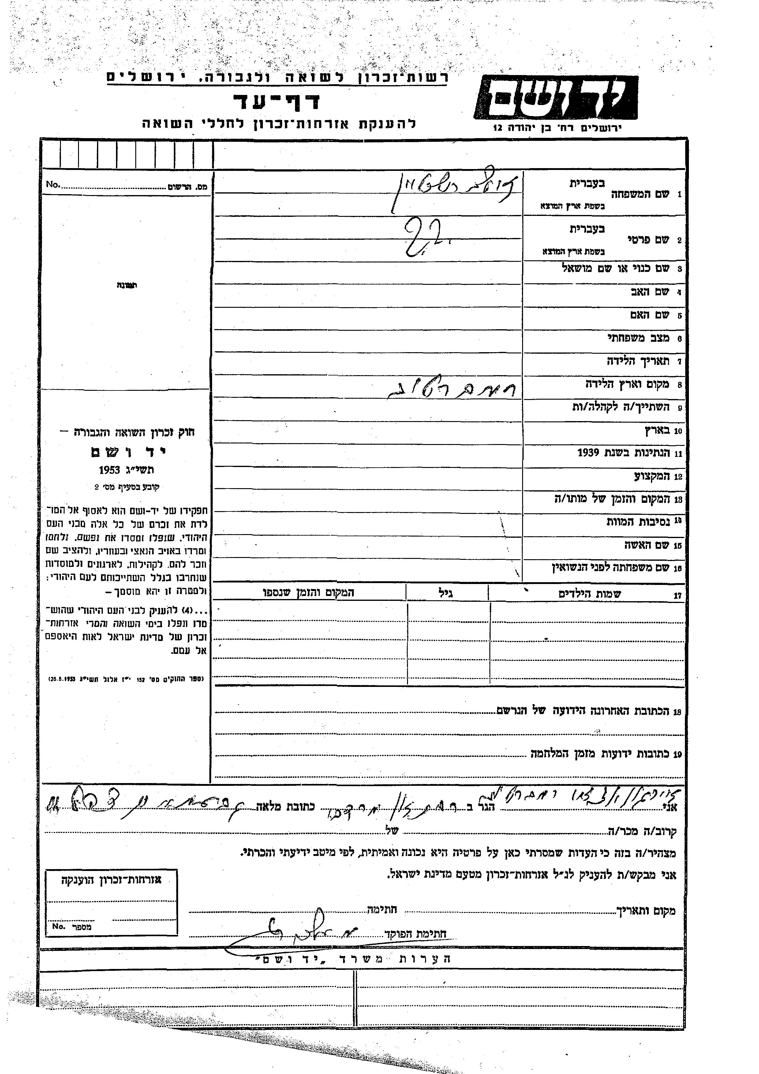 Yad Vashem - Pages of Testimony Names Memorial Collection