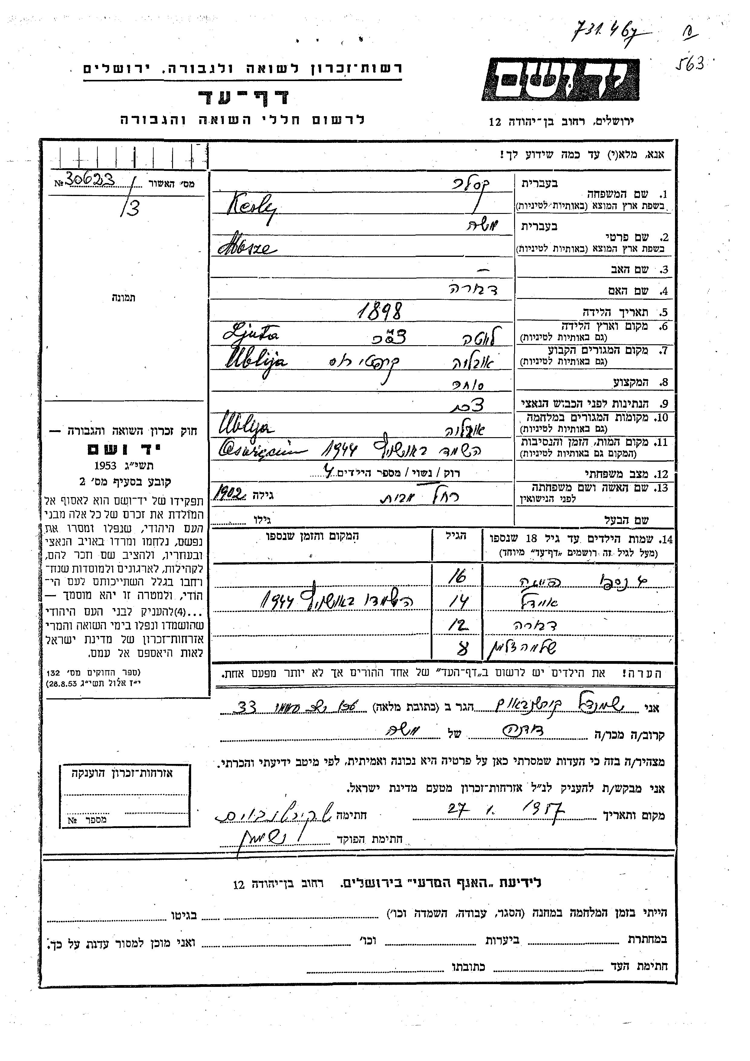 Yad Vashem - Pages of Testimony Names Memorial Collection