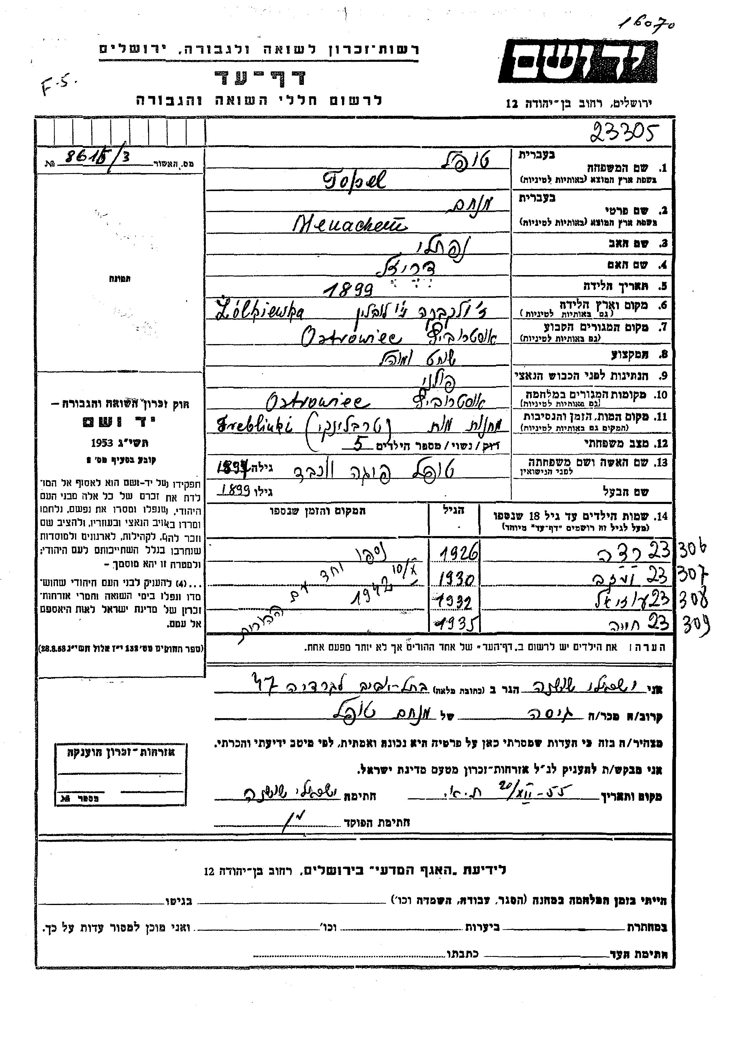 Yad Vashem - Pages of Testimony Names Memorial Collection