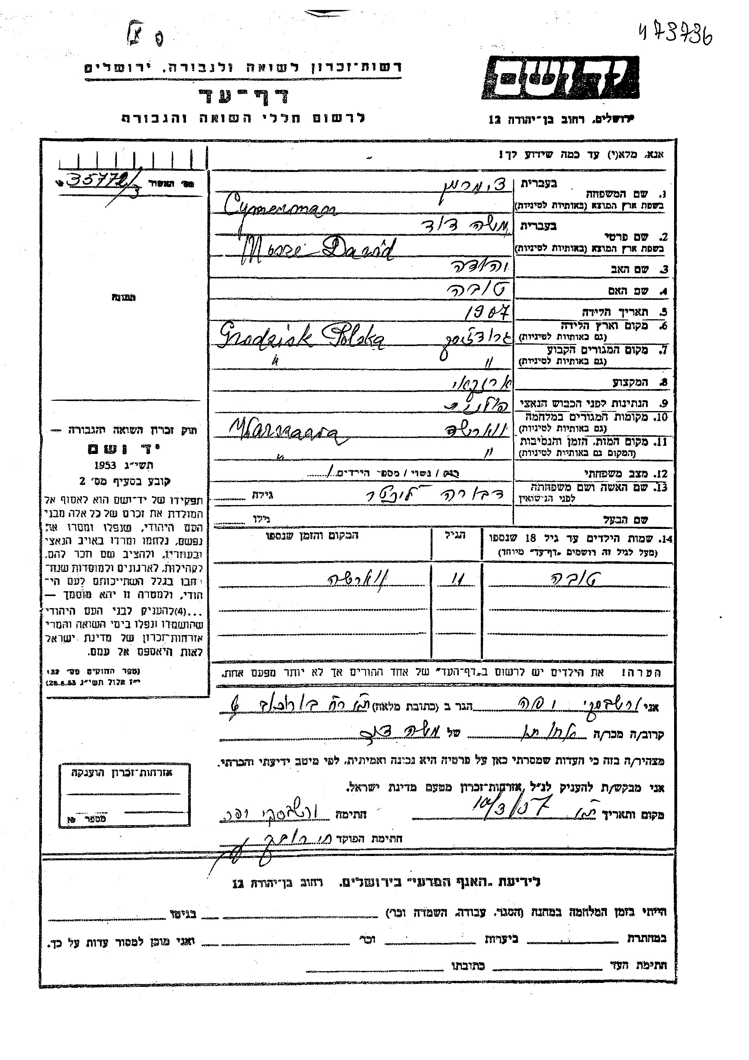 Yad Vashem - Pages of Testimony Names Memorial Collection