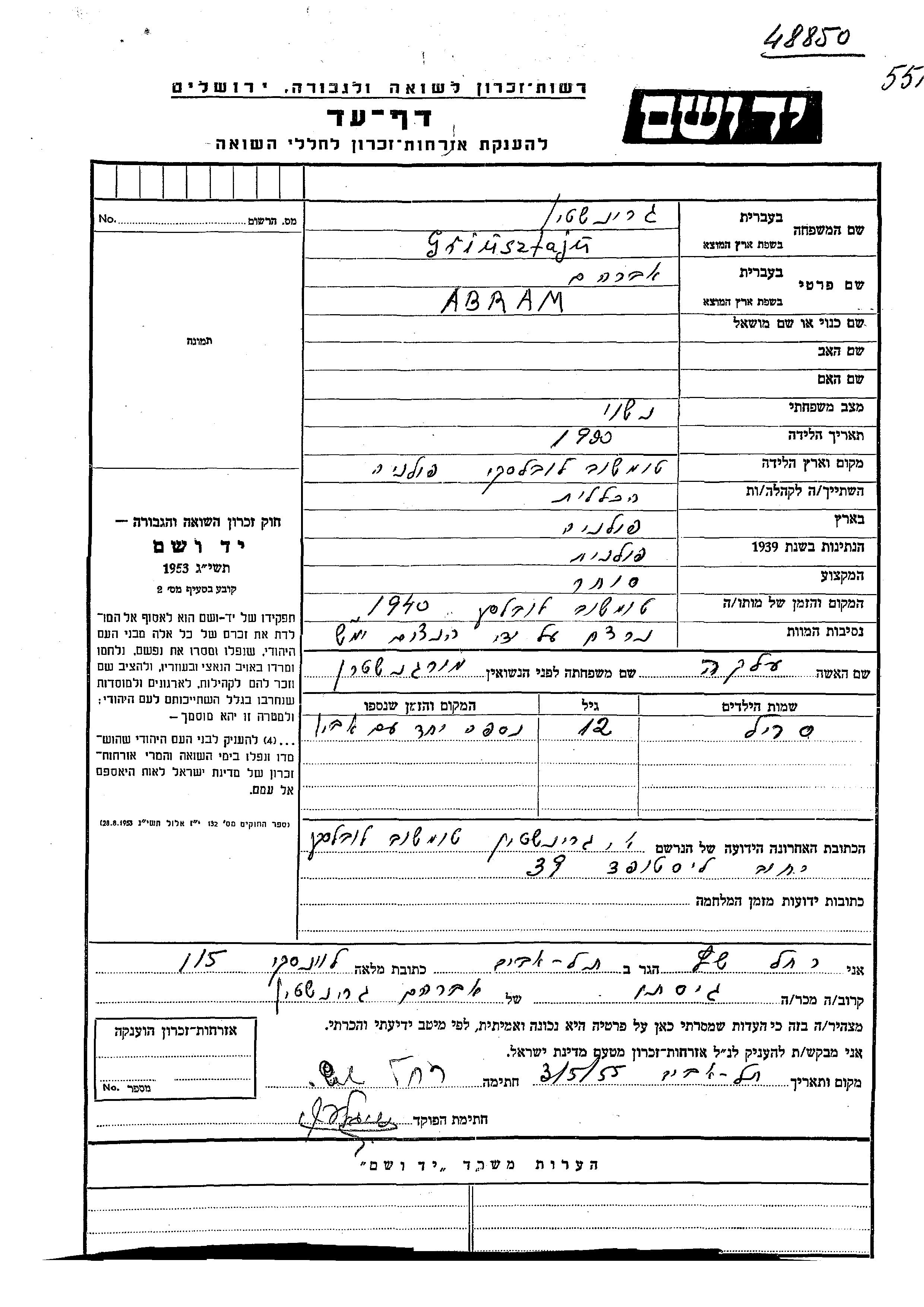 Yad Vashem - Pages of Testimony Names Memorial Collection