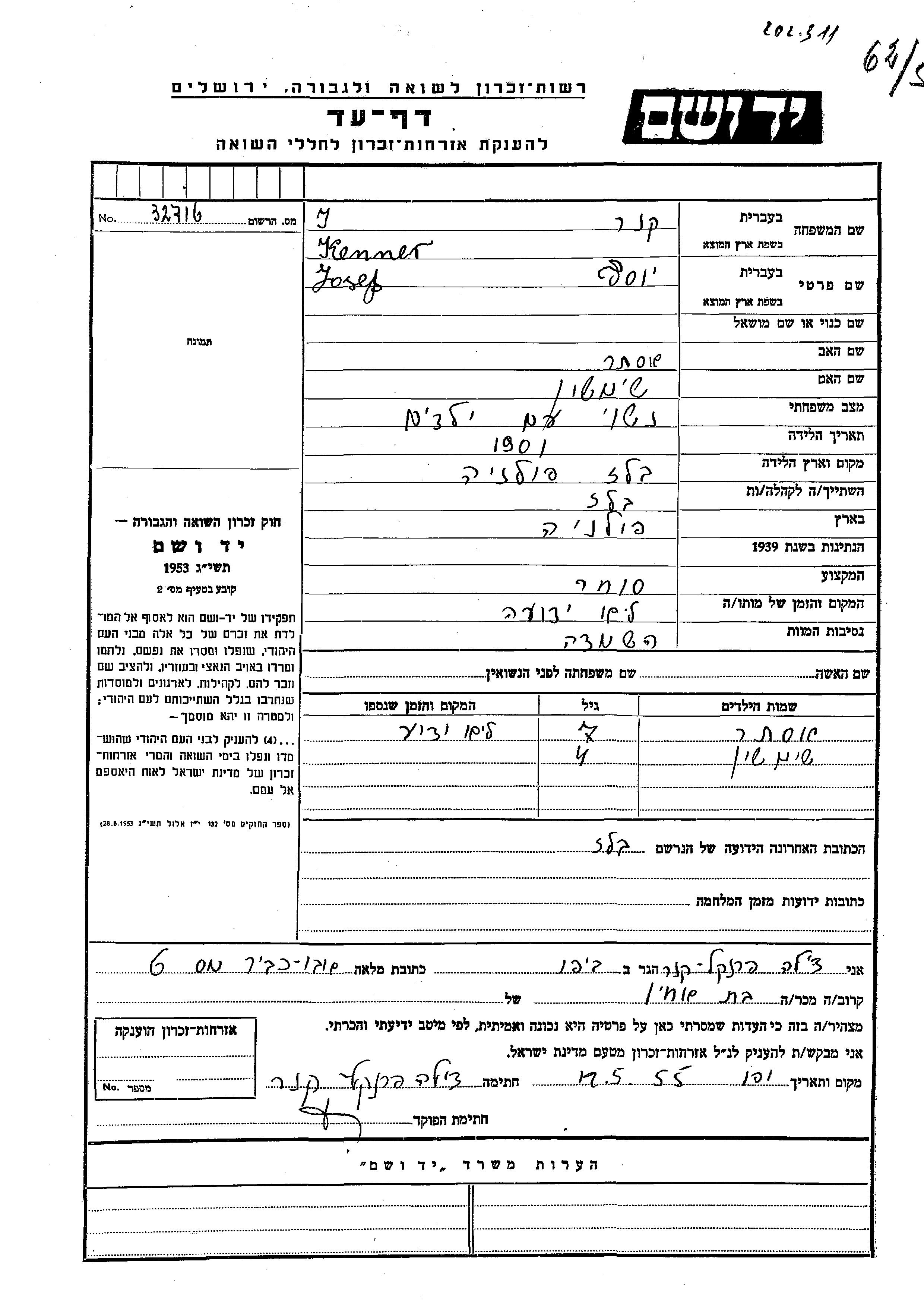 Yad Vashem - Pages of Testimony Names Memorial Collection