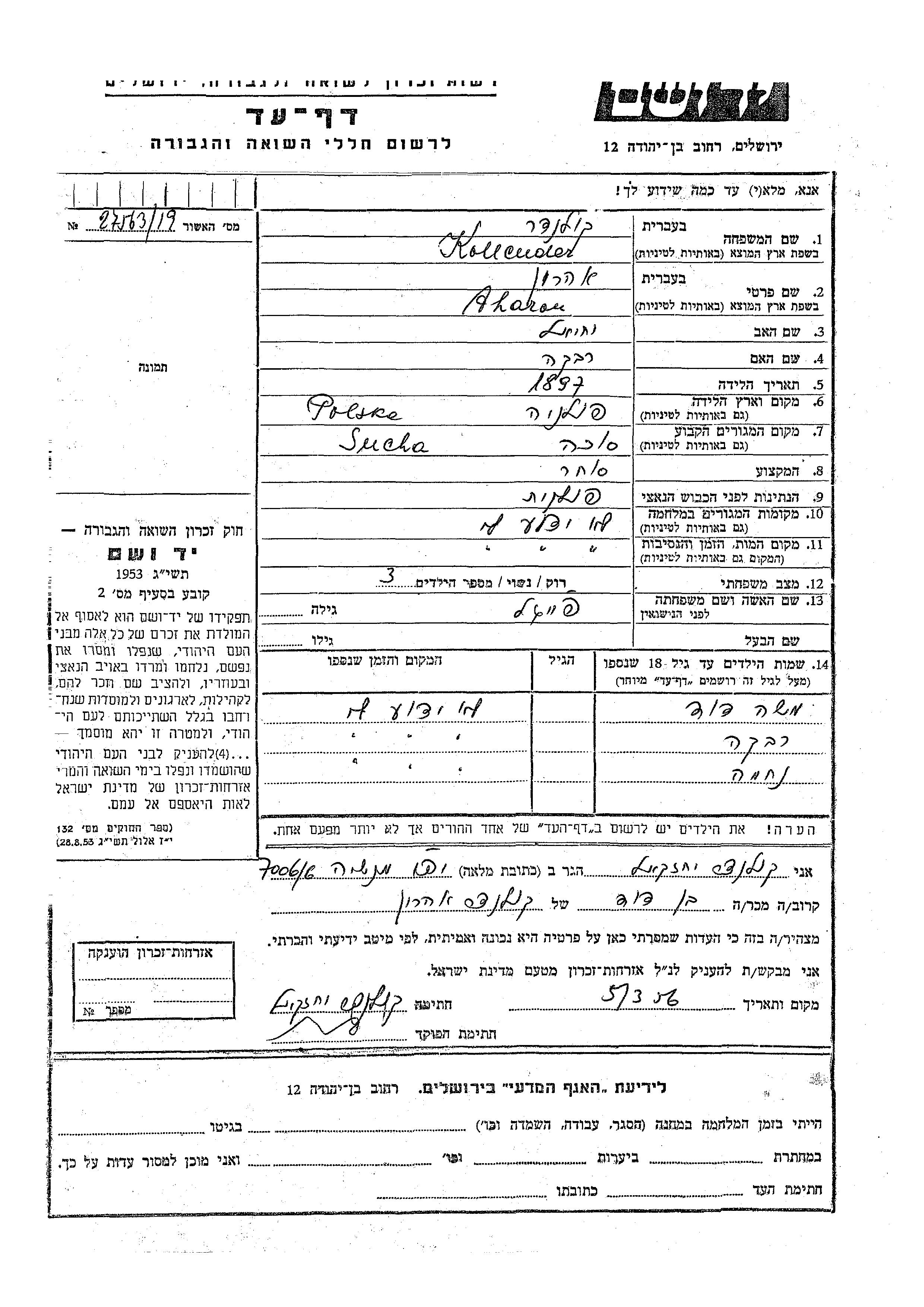 Kollender Moshe David Sucha, Pologne Feuille de témoignage