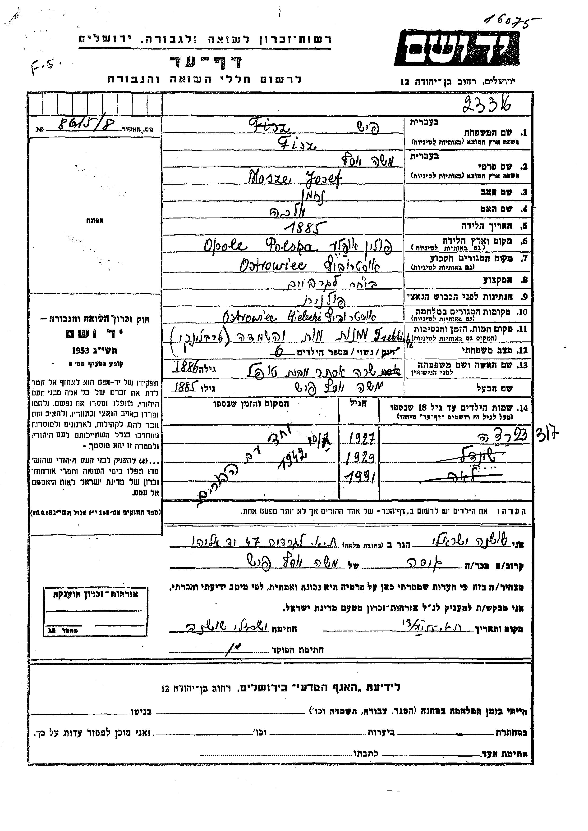 Yad Vashem - Pages of Testimony Names Memorial Collection