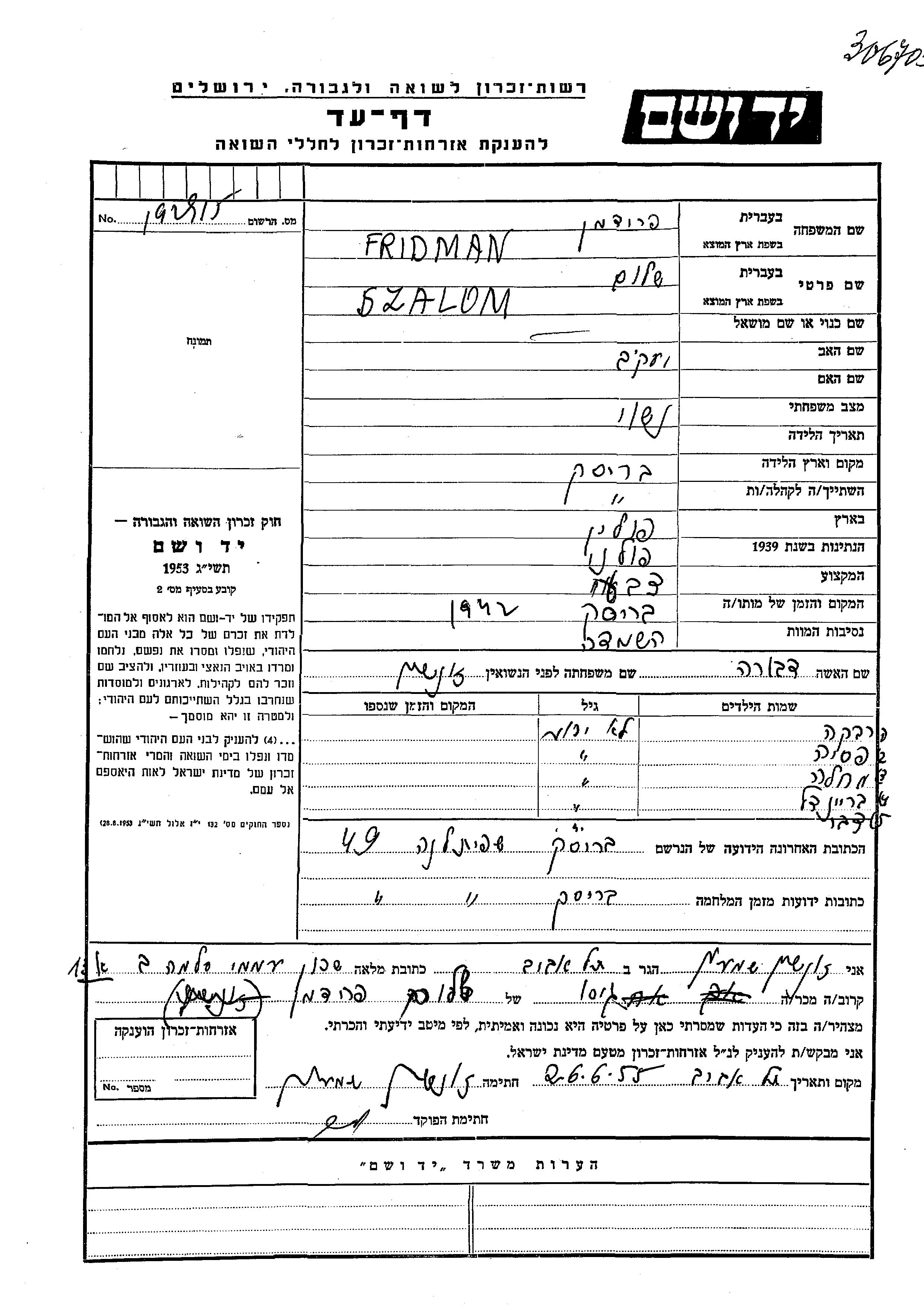 Yad Vashem - Pages of Testimony Names Memorial Collection