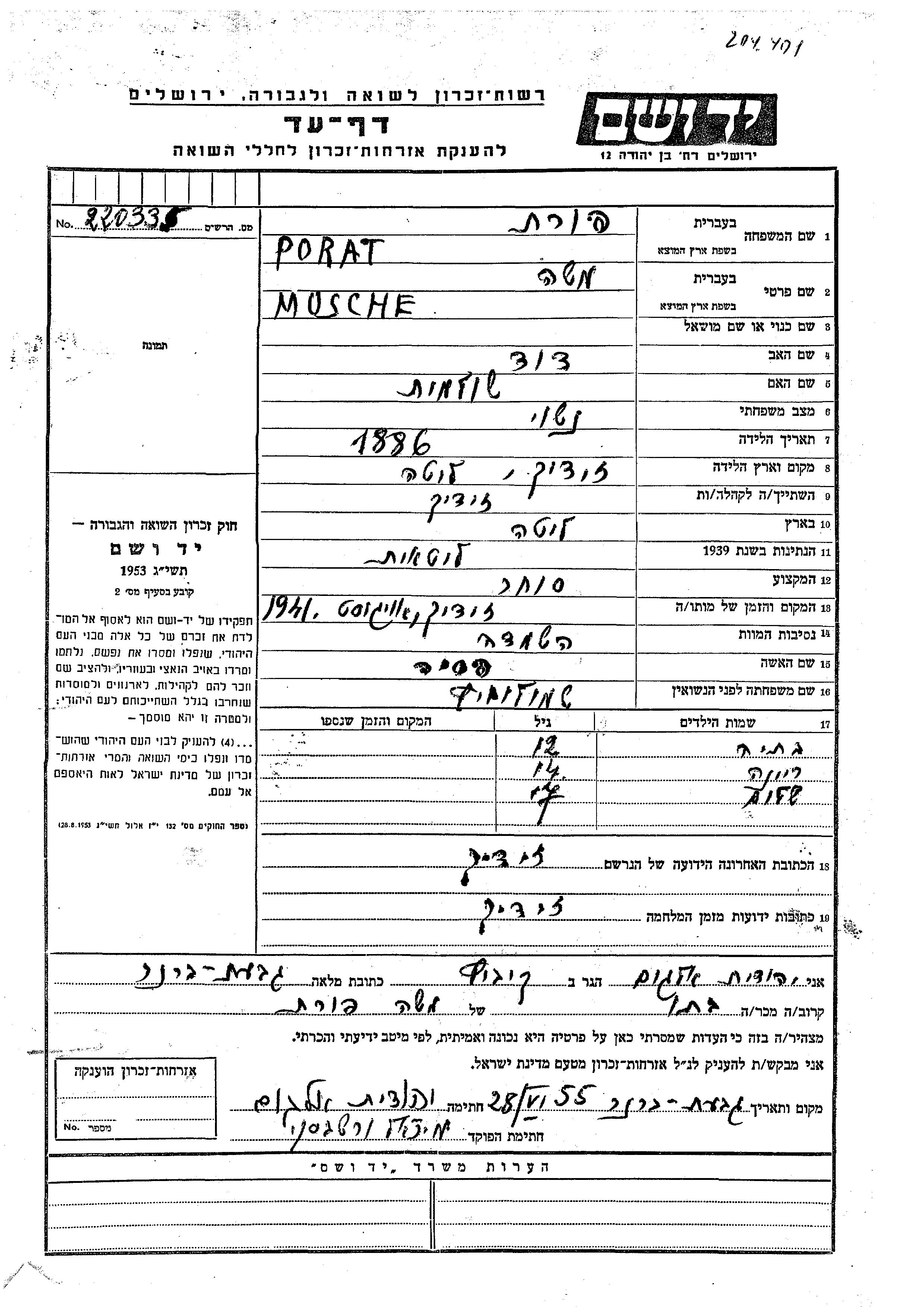Yad Vashem - Pages of Testimony Names Memorial Collection