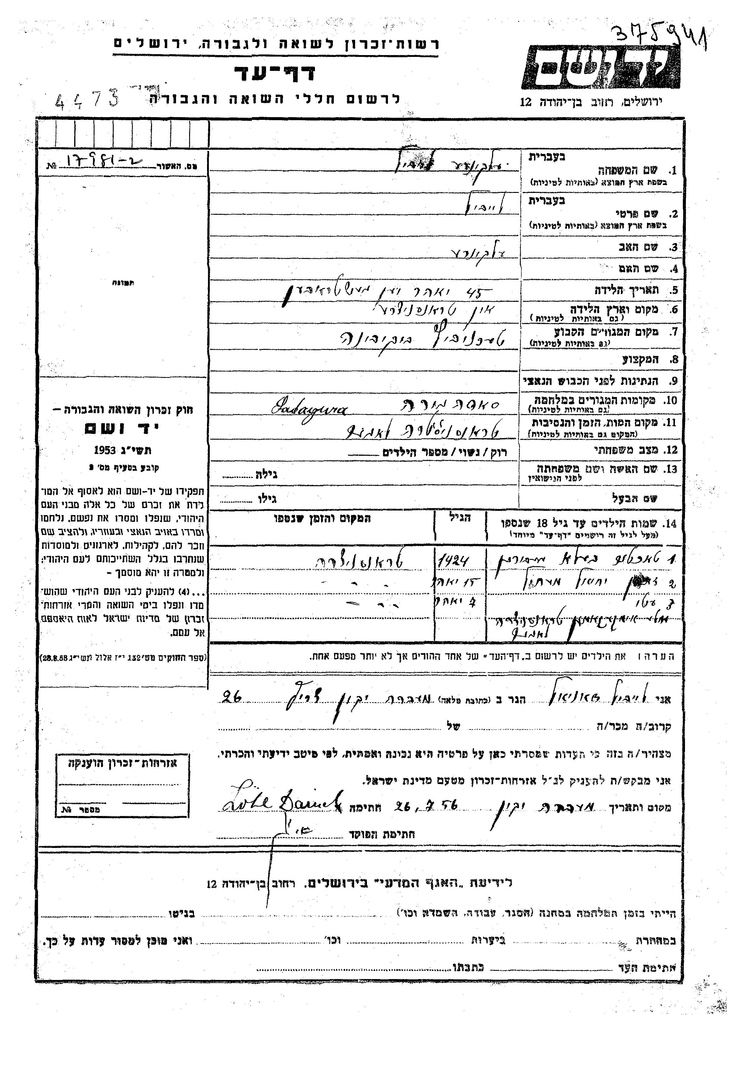 Yad Vashem - Pages of Testimony Names Memorial Collection