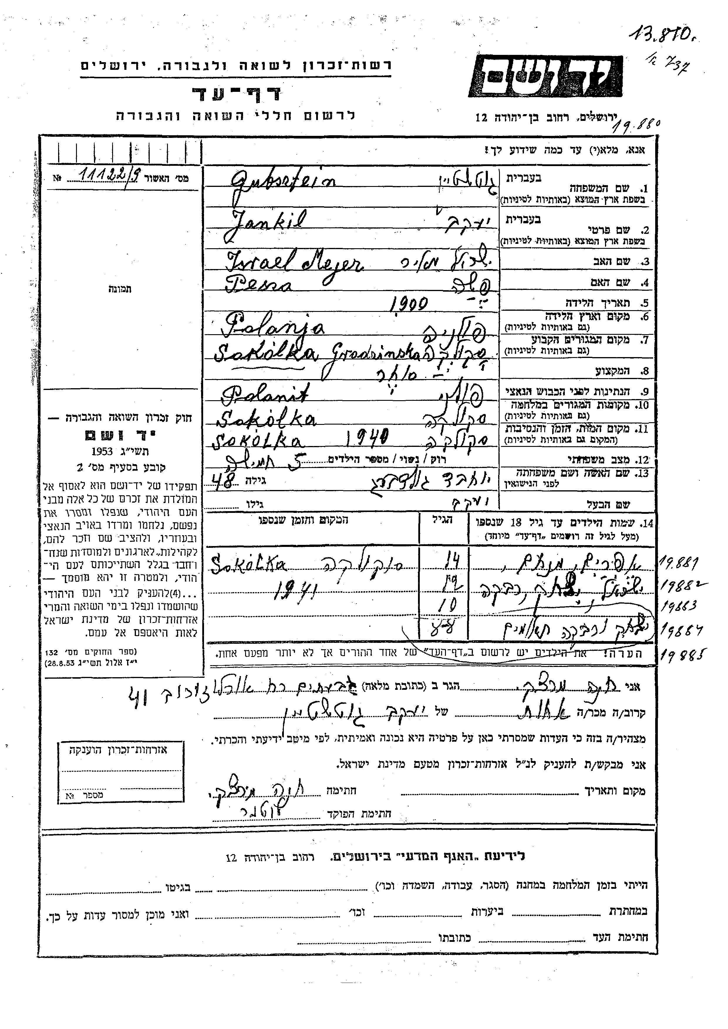 Gutsztein Yisrael Sokolka, Pologne Feuille de témoignage