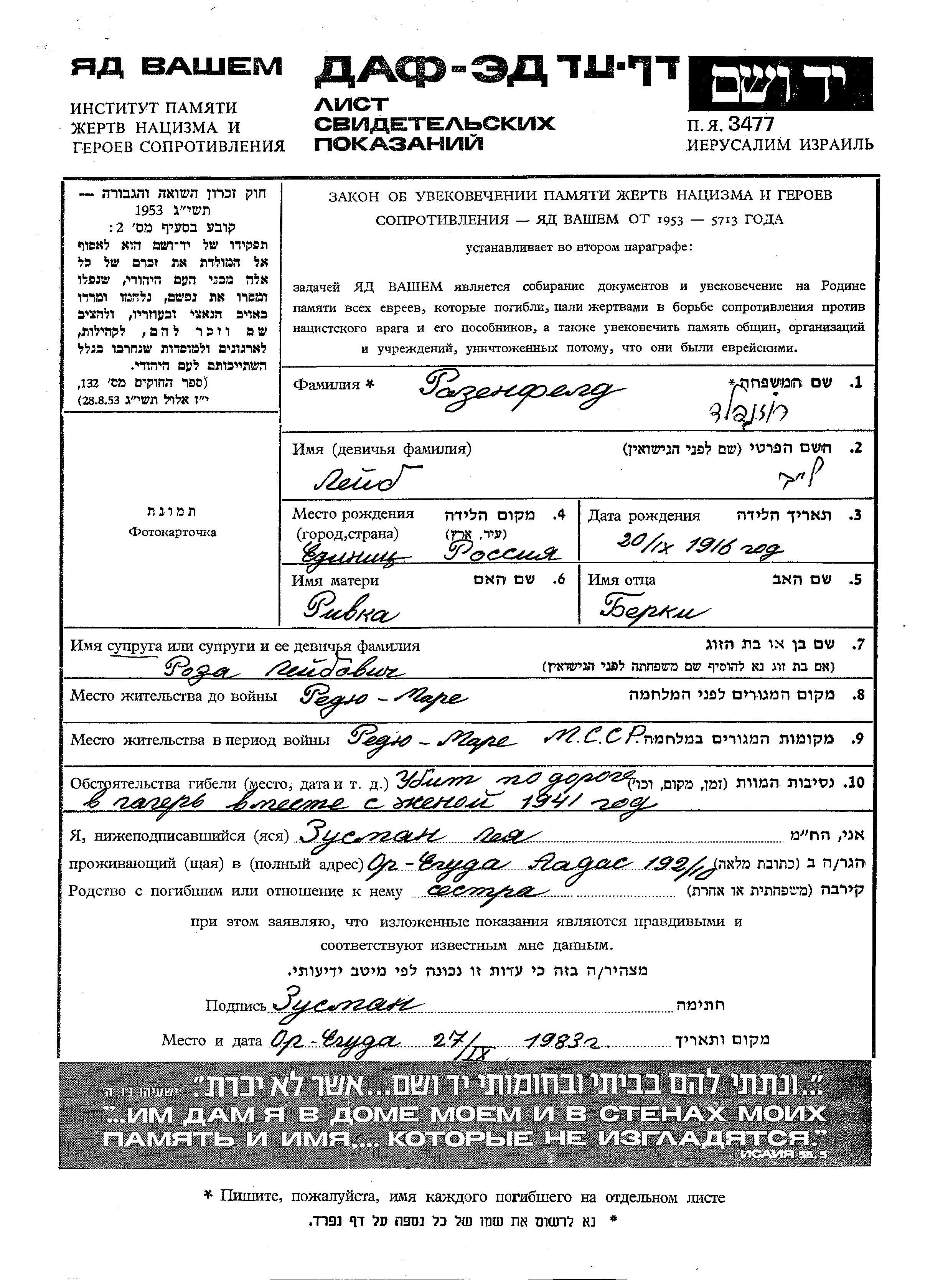 Yad Vashem - Pages of Testimony Names Memorial Collection