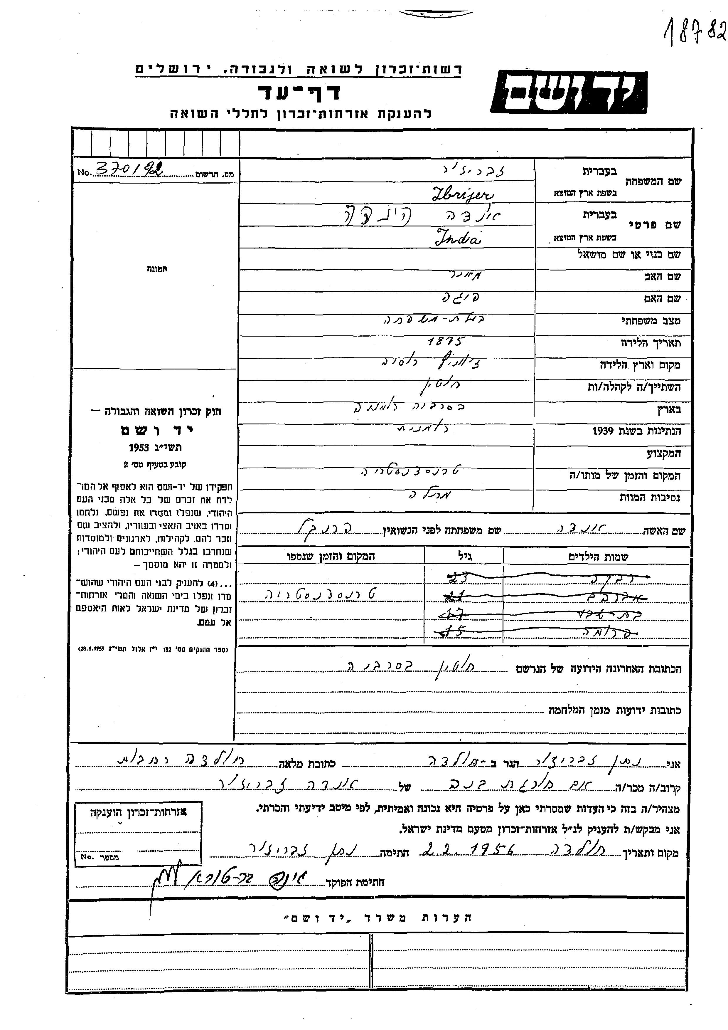 Yad Vashem - Pages of Testimony Names Memorial Collection