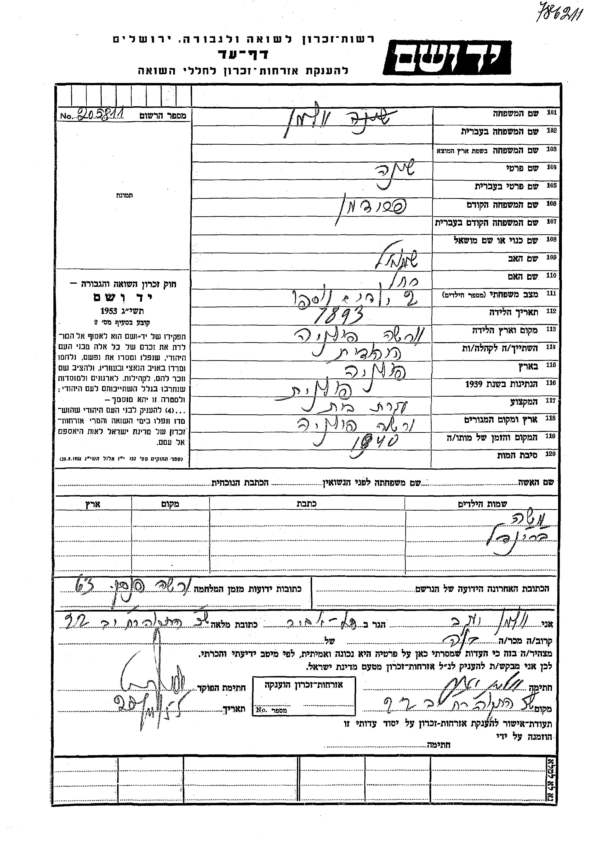 Yad Vashem - Pages of Testimony Names Memorial Collection