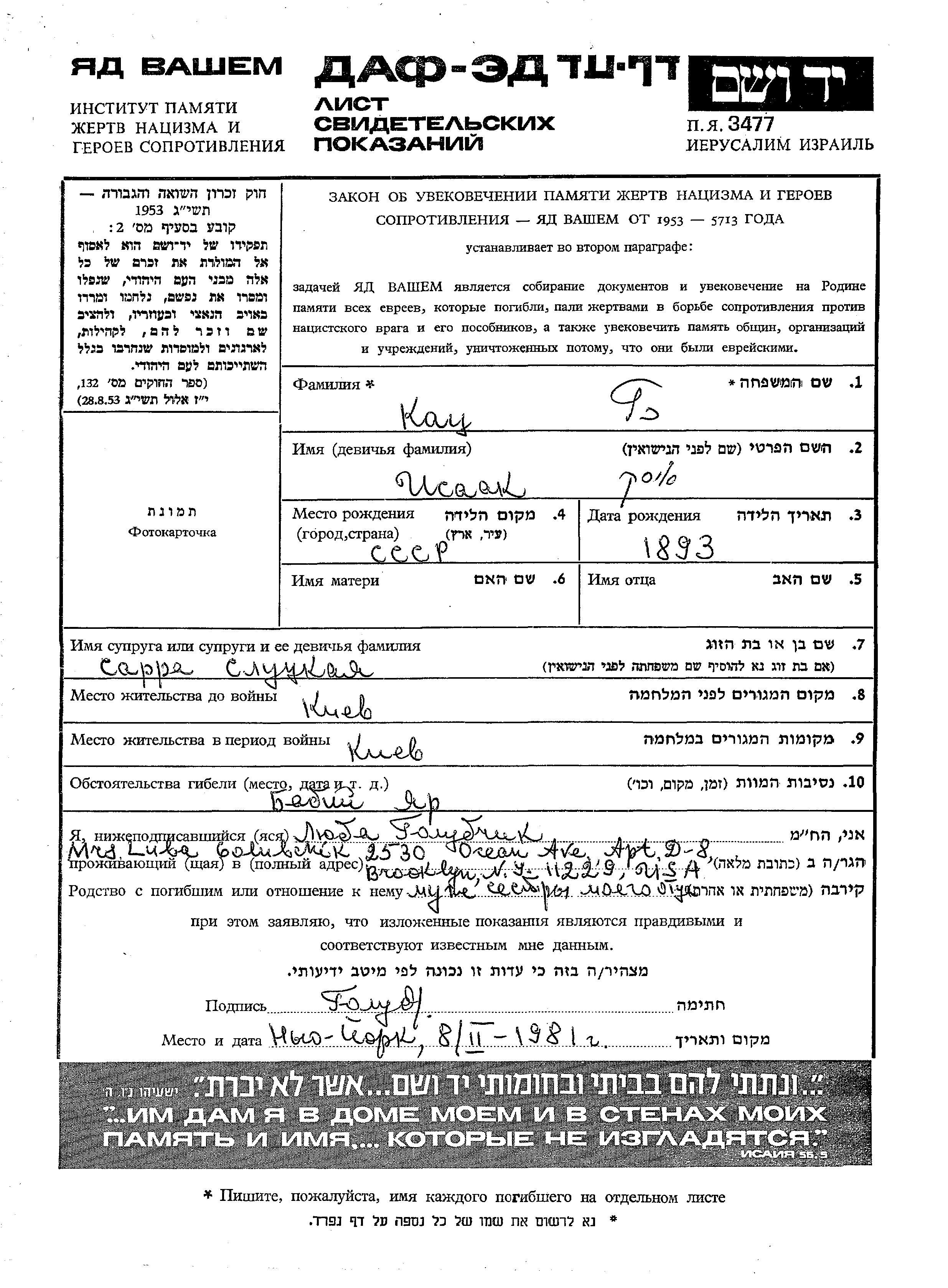 Yad Vashem - Pages of Testimony Names Memorial Collection