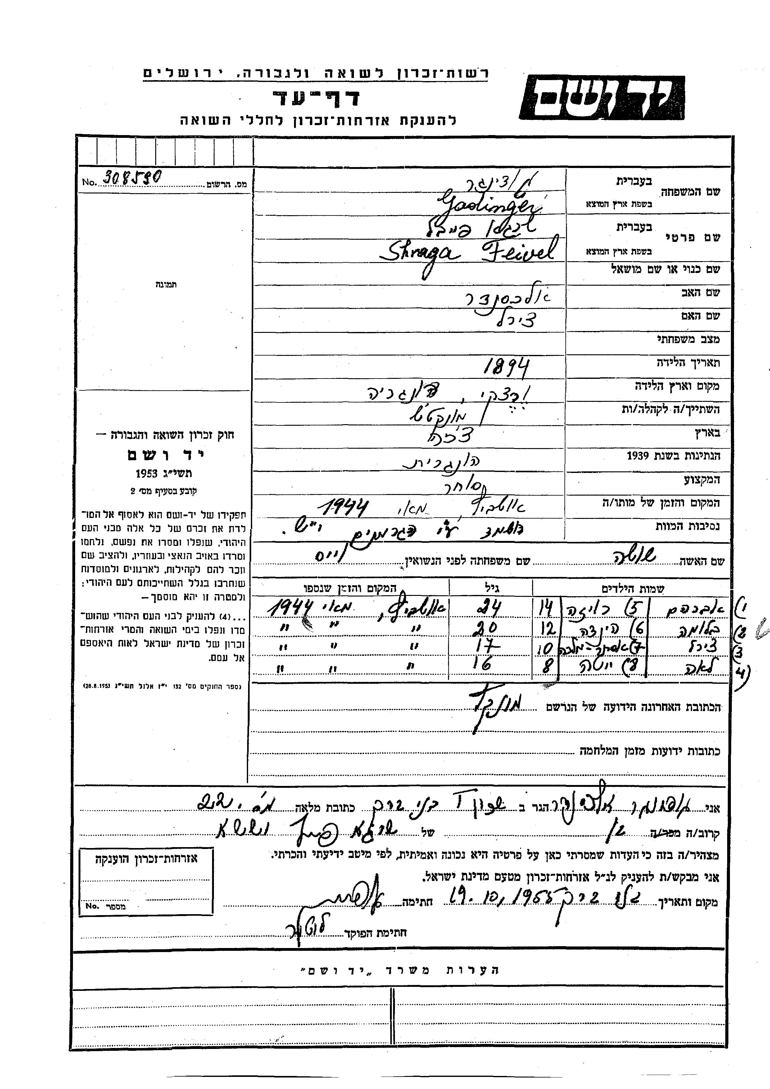 Recherche par date de la mort pendant la période de la Shoah: 1933-1945. Sélectionnez 'Exact'; dans la liste pour rechercher l'année exacte, ou sélectionner '+/- 2 ans'; ou '+/- 5 ans