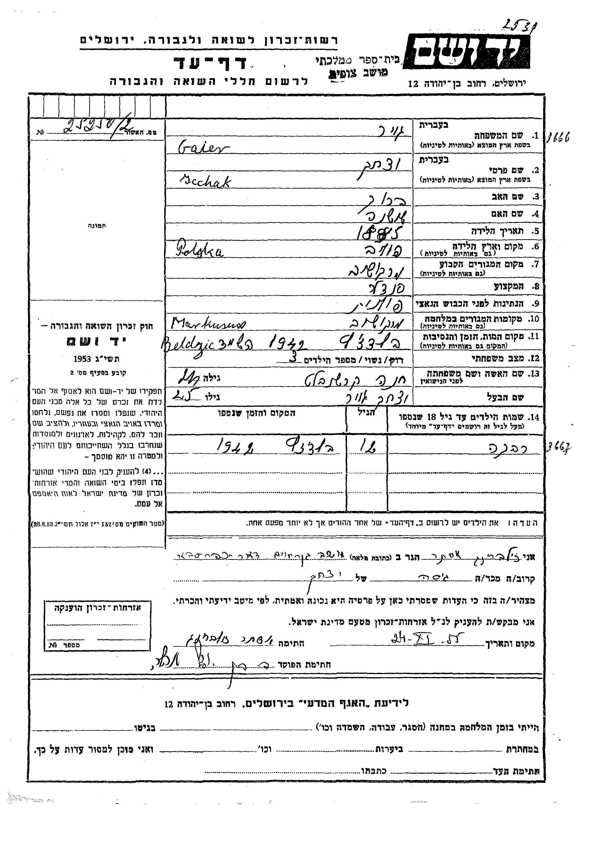 Gaier Rivka Markushev, Pologne Feuille de témoignage