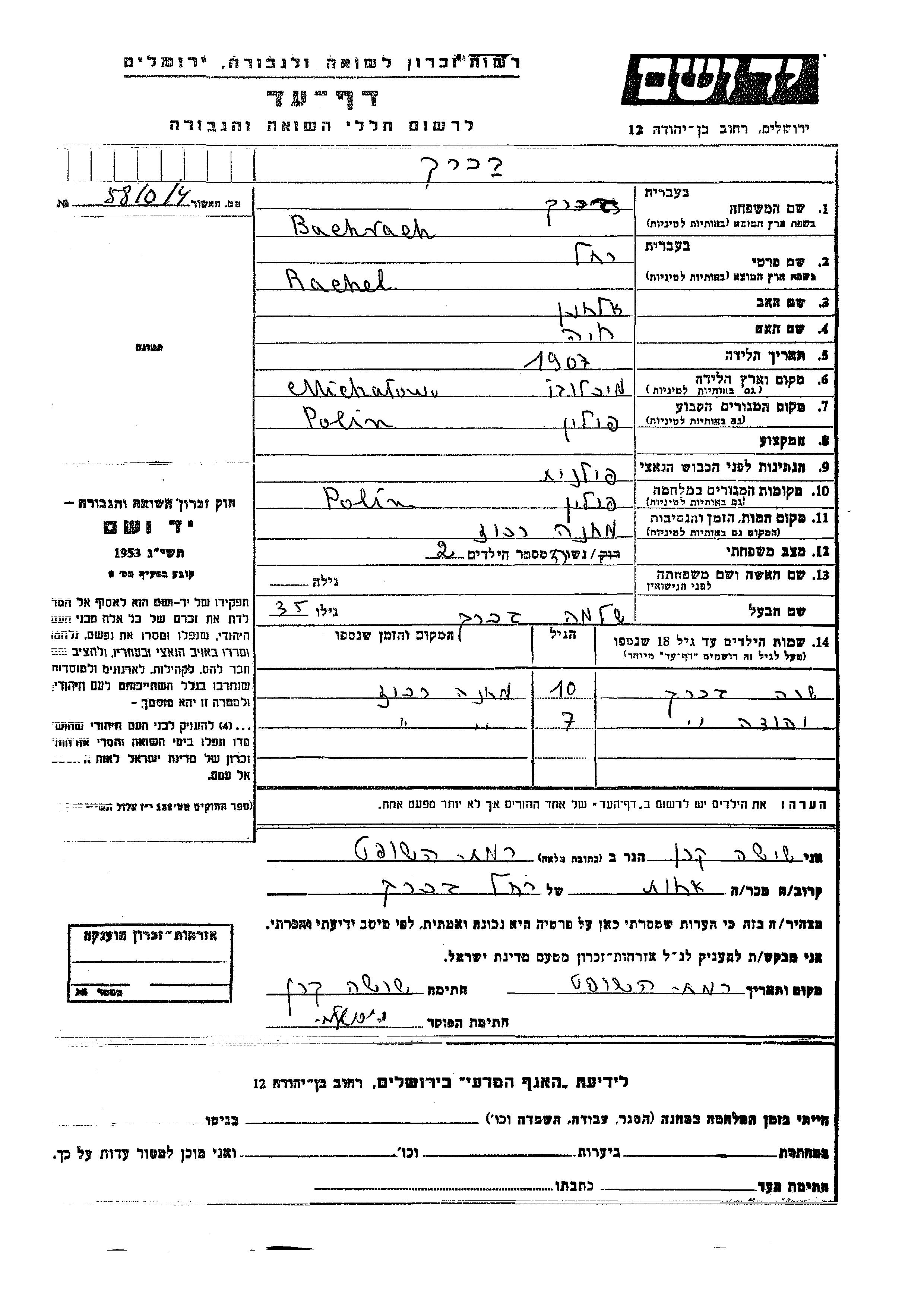 Yad Vashem - Pages of Testimony Names Memorial Collection