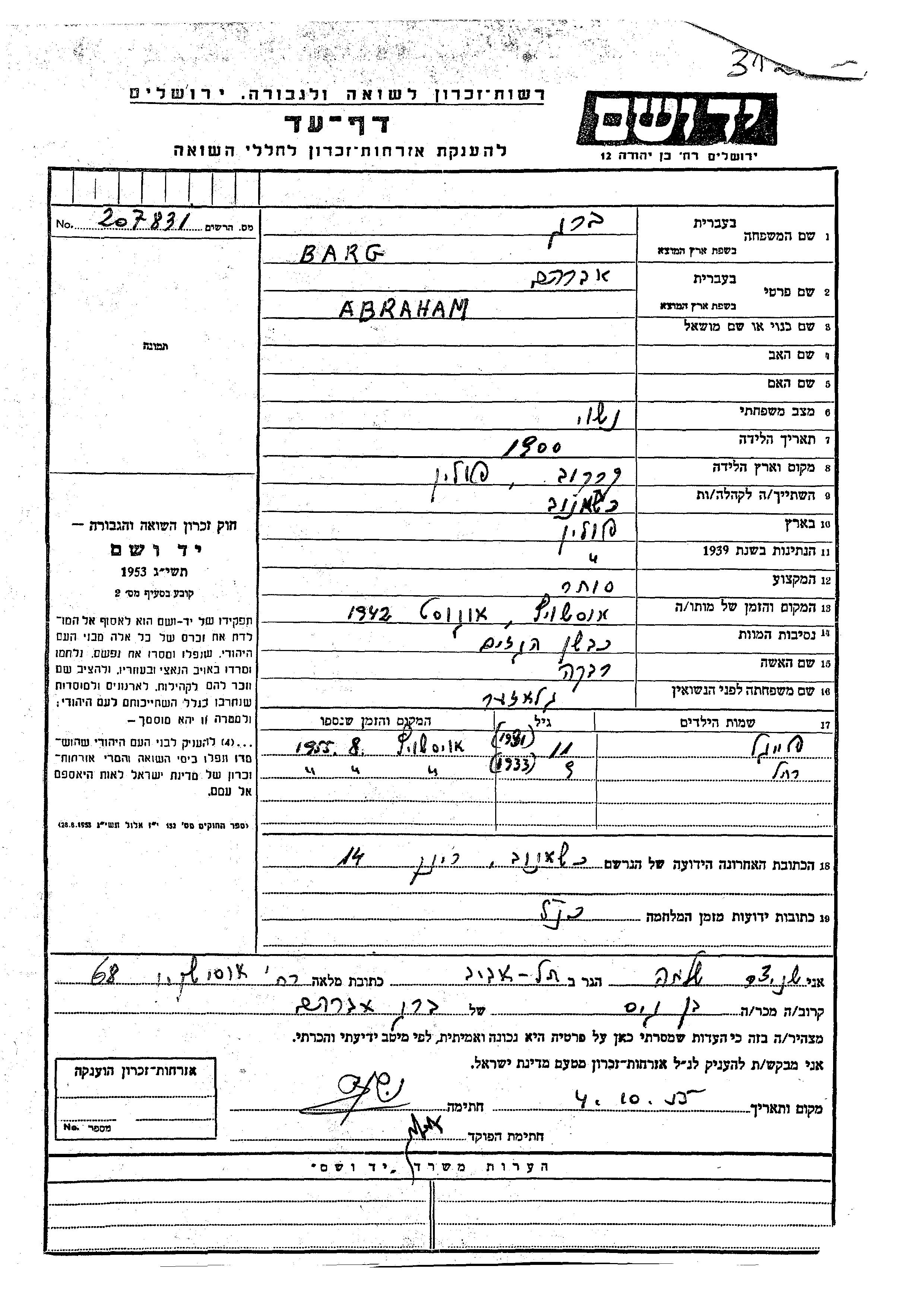 Yad Vashem - Pages of Testimony Names Memorial Collection