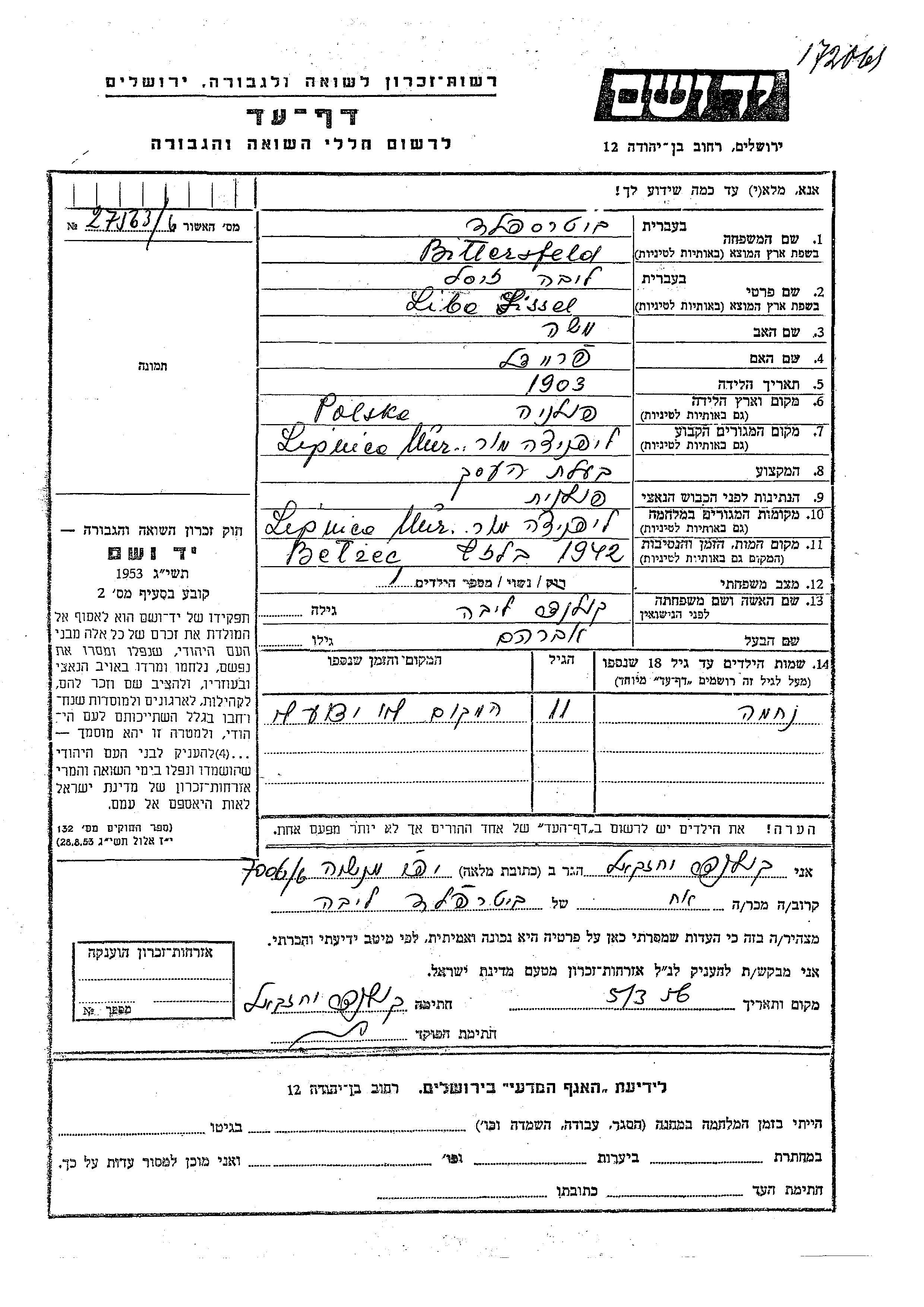 Yad Vashem - Pages of Testimony Names Memorial Collection