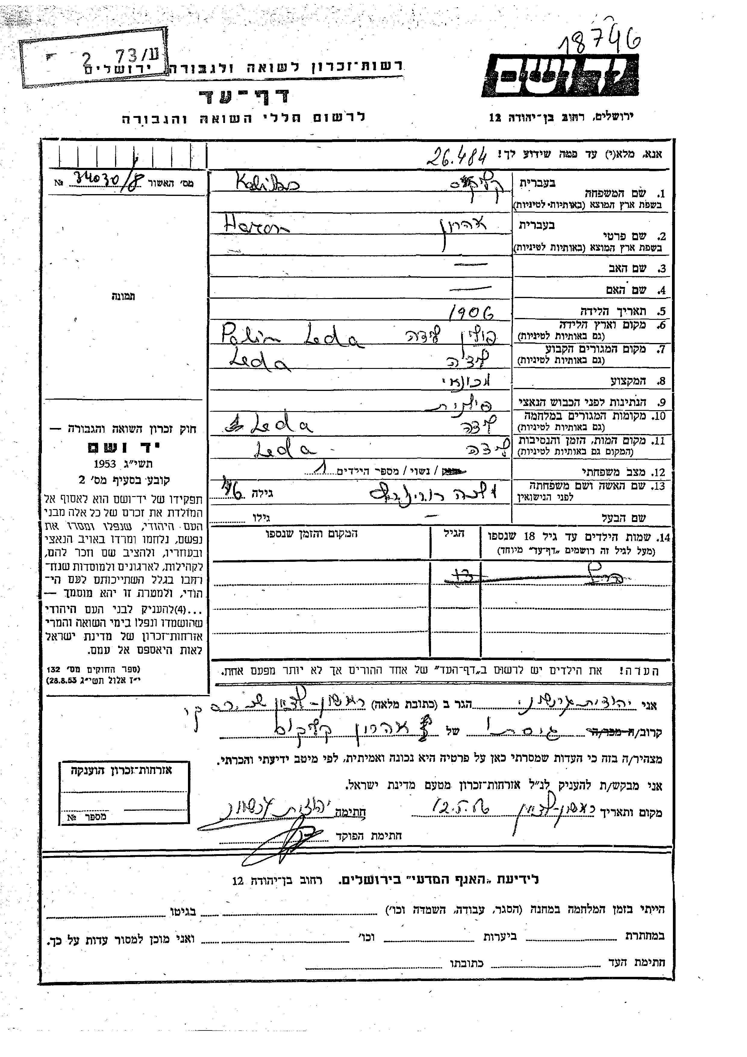 Yad Vashem - Pages of Testimony Names Memorial Collection