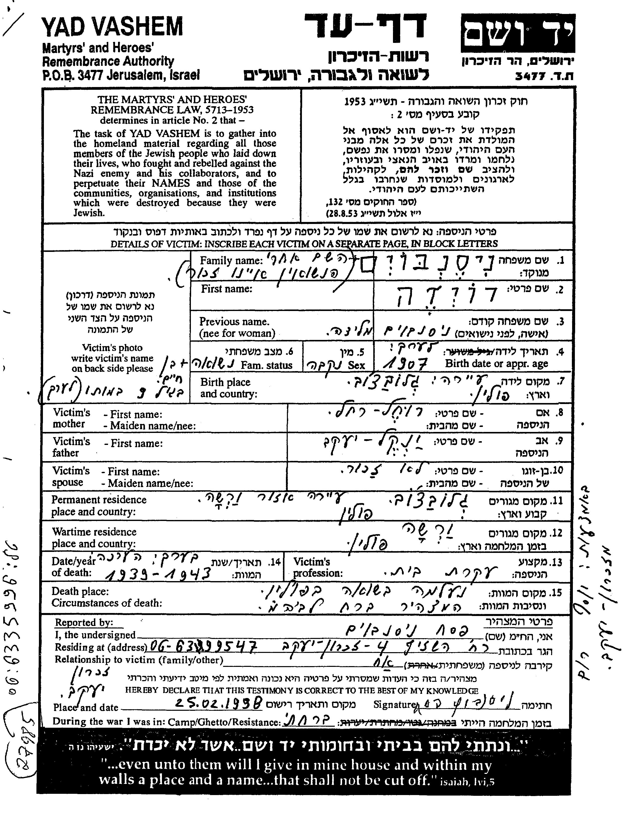 Recherche par date de la mort pendant la période de la Shoah: 1933-1945. Sélectionnez 'Exact'; dans la liste pour rechercher l'année exacte, ou sélectionner '+/- 2 ans'; ou '+/- 5 ans