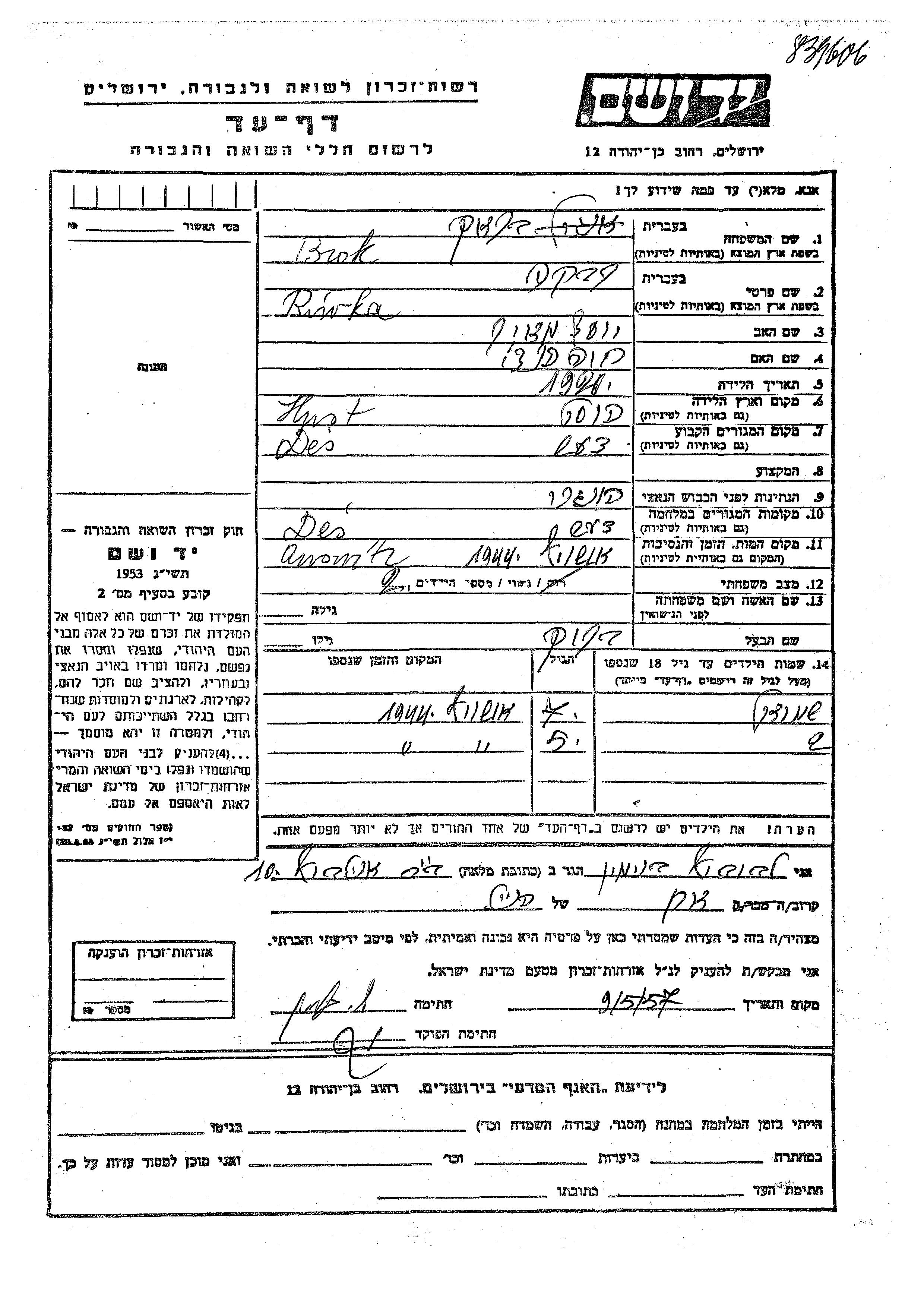 Yad Vashem - Pages of Testimony Names Memorial Collection
