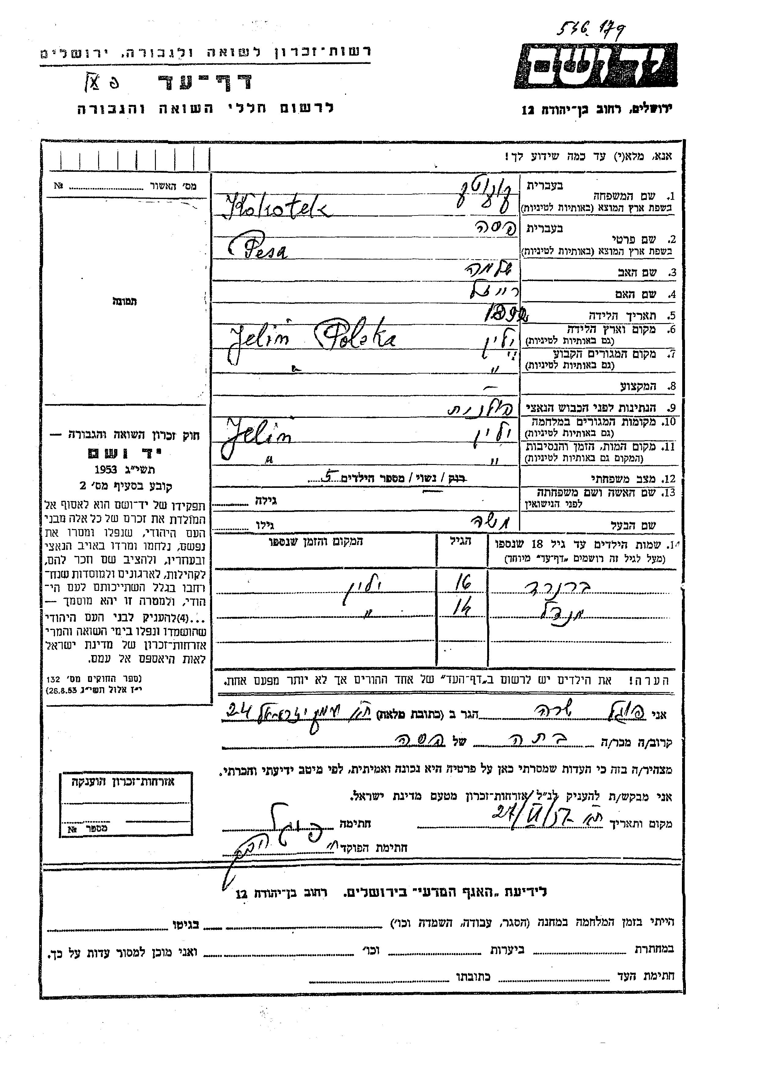 Yad Vashem - Pages of Testimony Names Memorial Collection