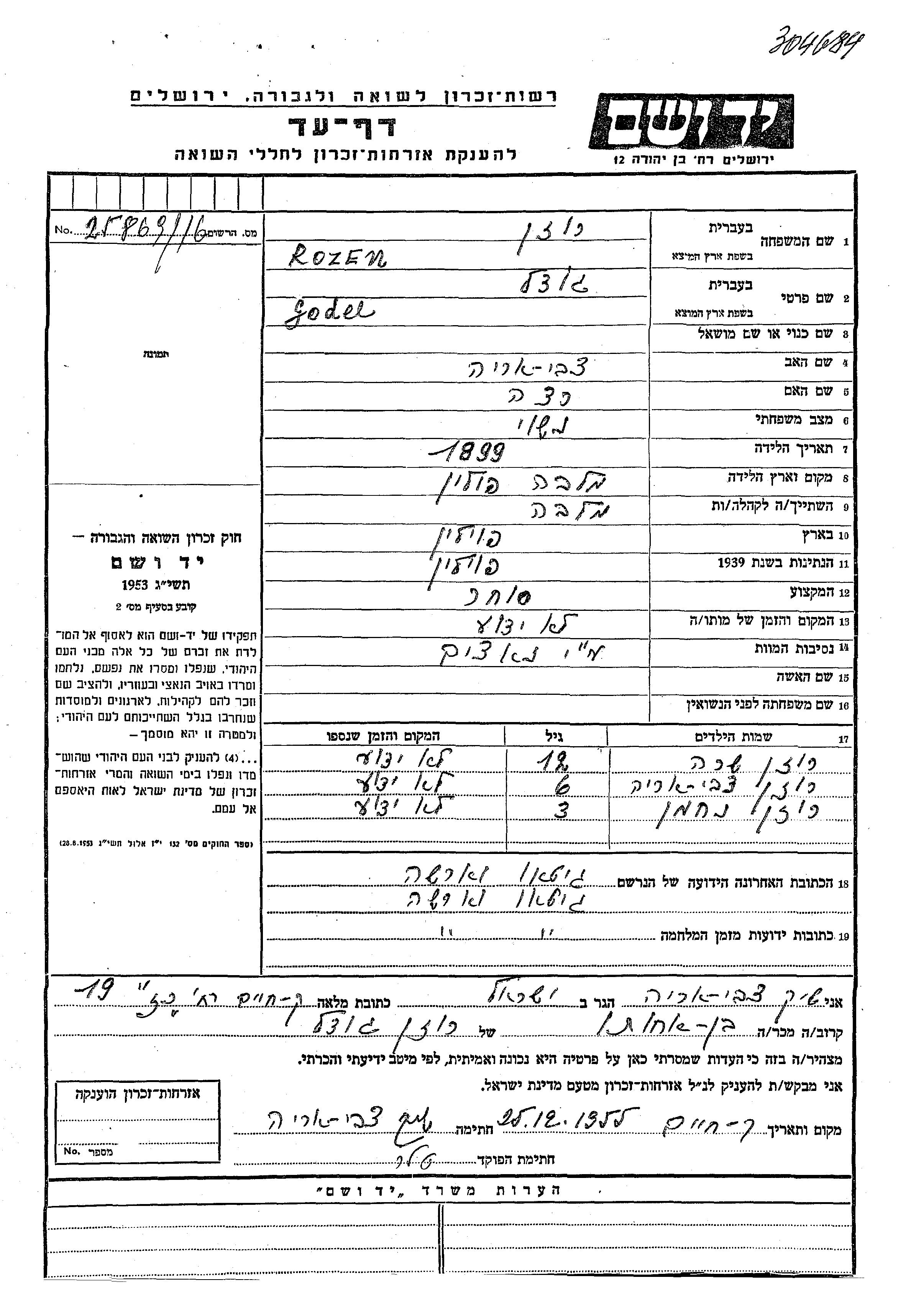 Yad Vashem - Pages of Testimony Names Memorial Collection
