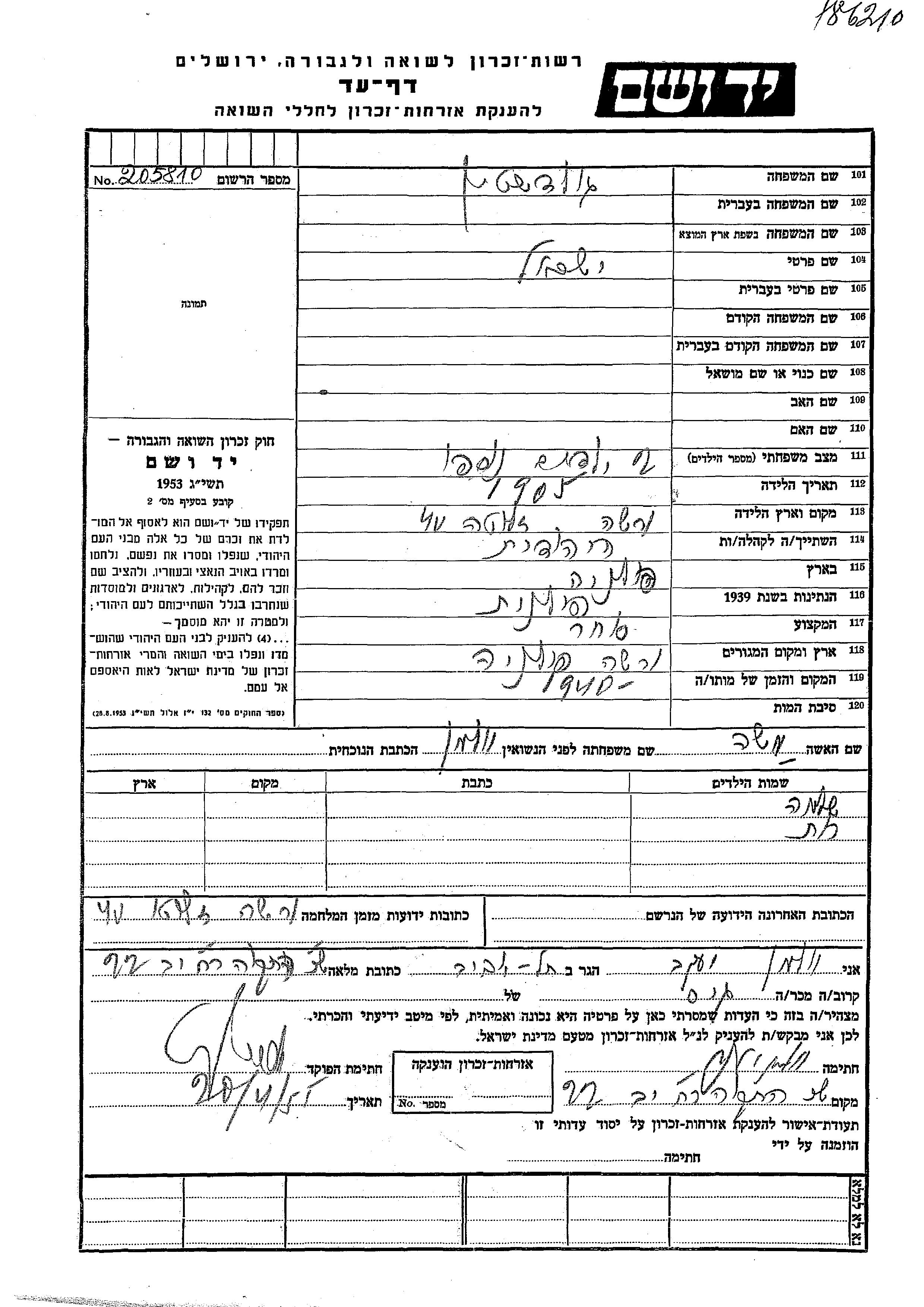 Yad Vashem - Pages of Testimony Names Memorial Collection