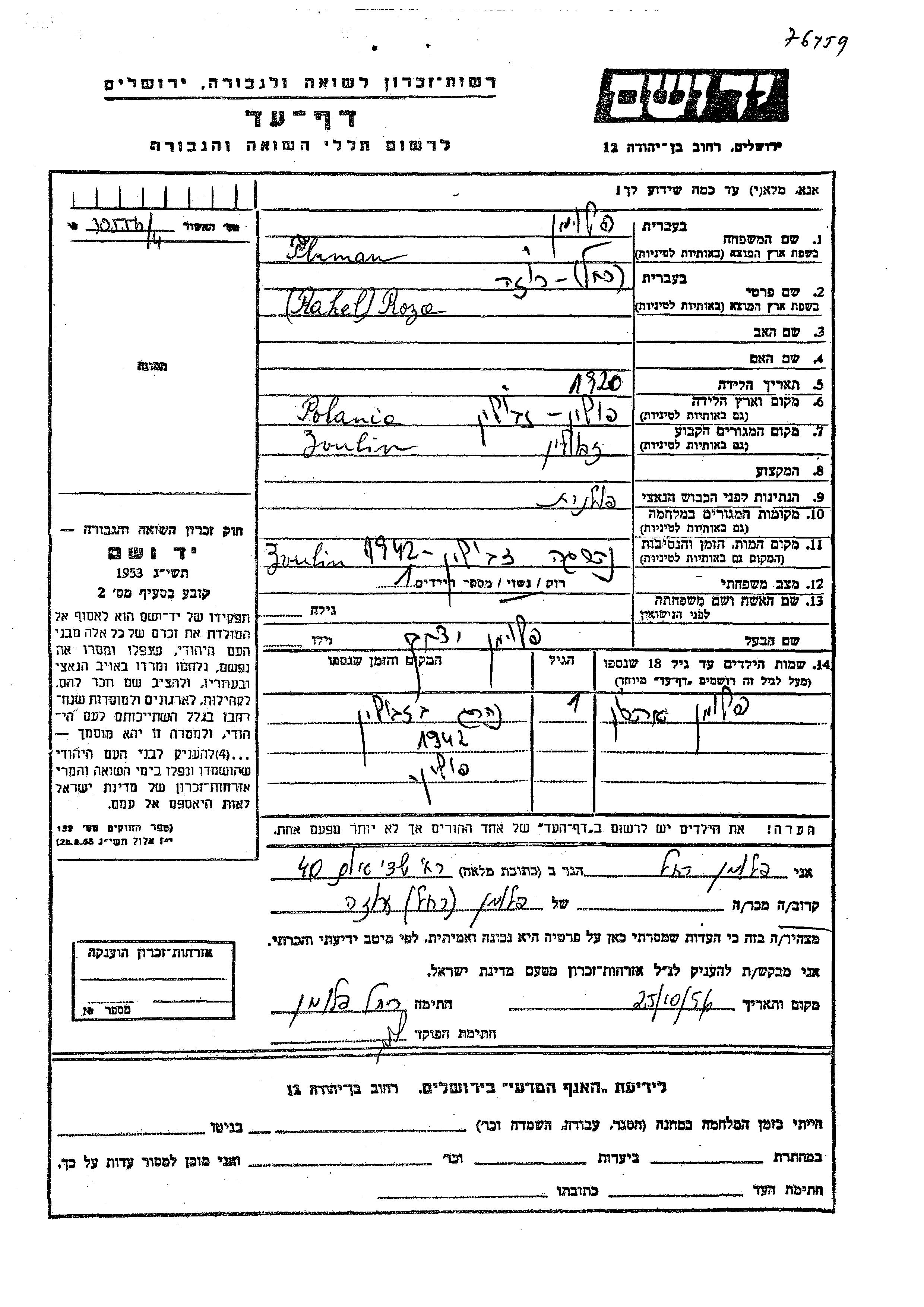 Yad Vashem - Pages of Testimony Names Memorial Collection