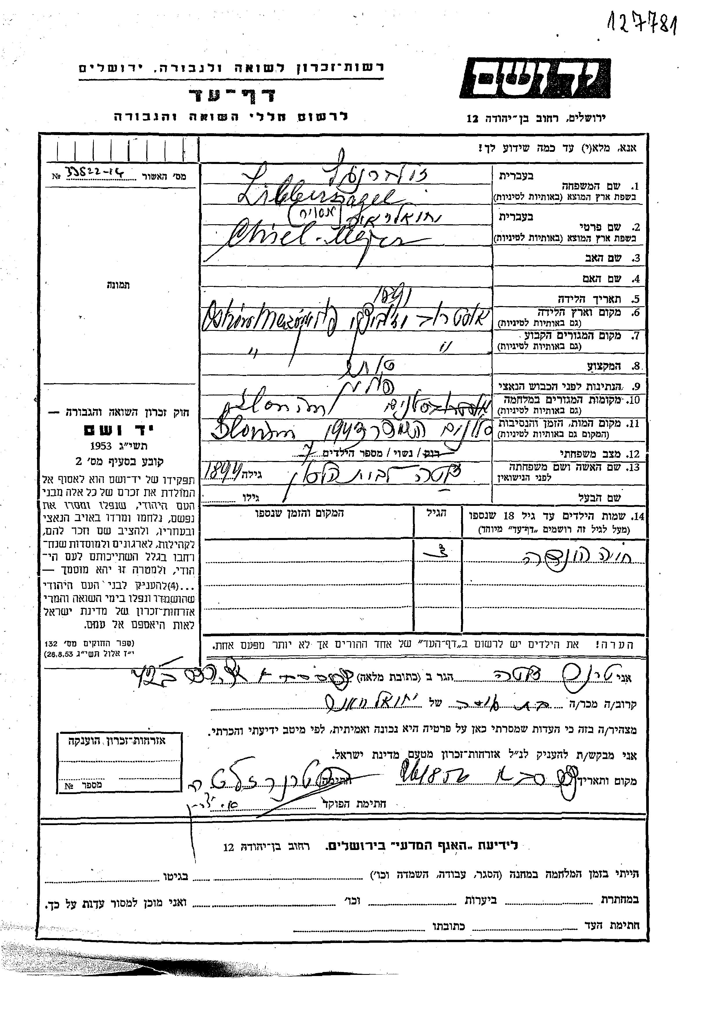 Yad Vashem - Pages of Testimony Names Memorial Collection