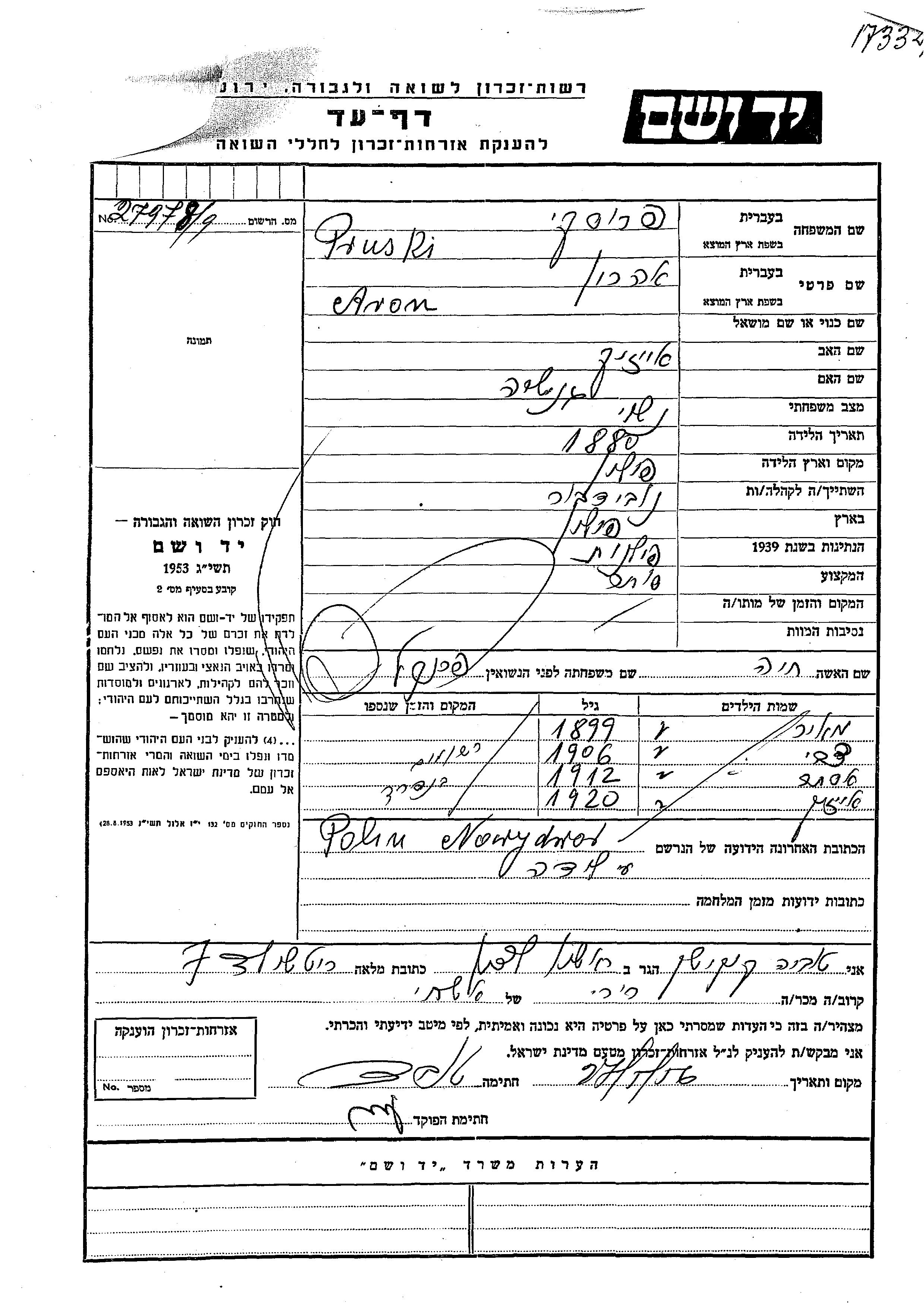 Yad Vashem - Pages of Testimony Names Memorial Collection