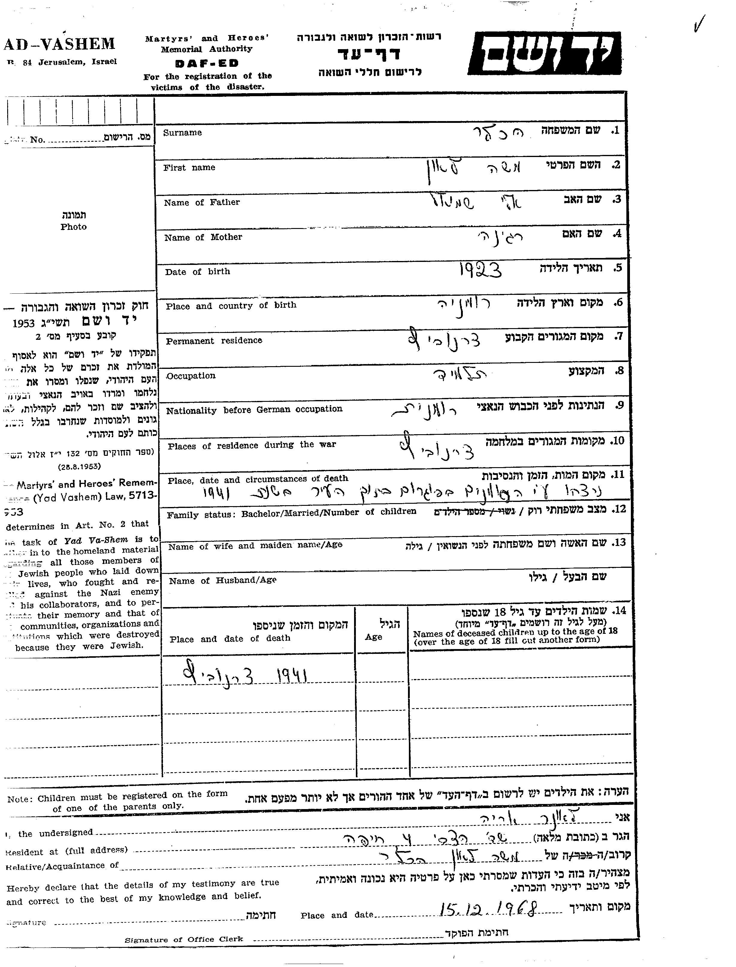 Yad Vashem - Pages of Testimony Names Memorial Collection