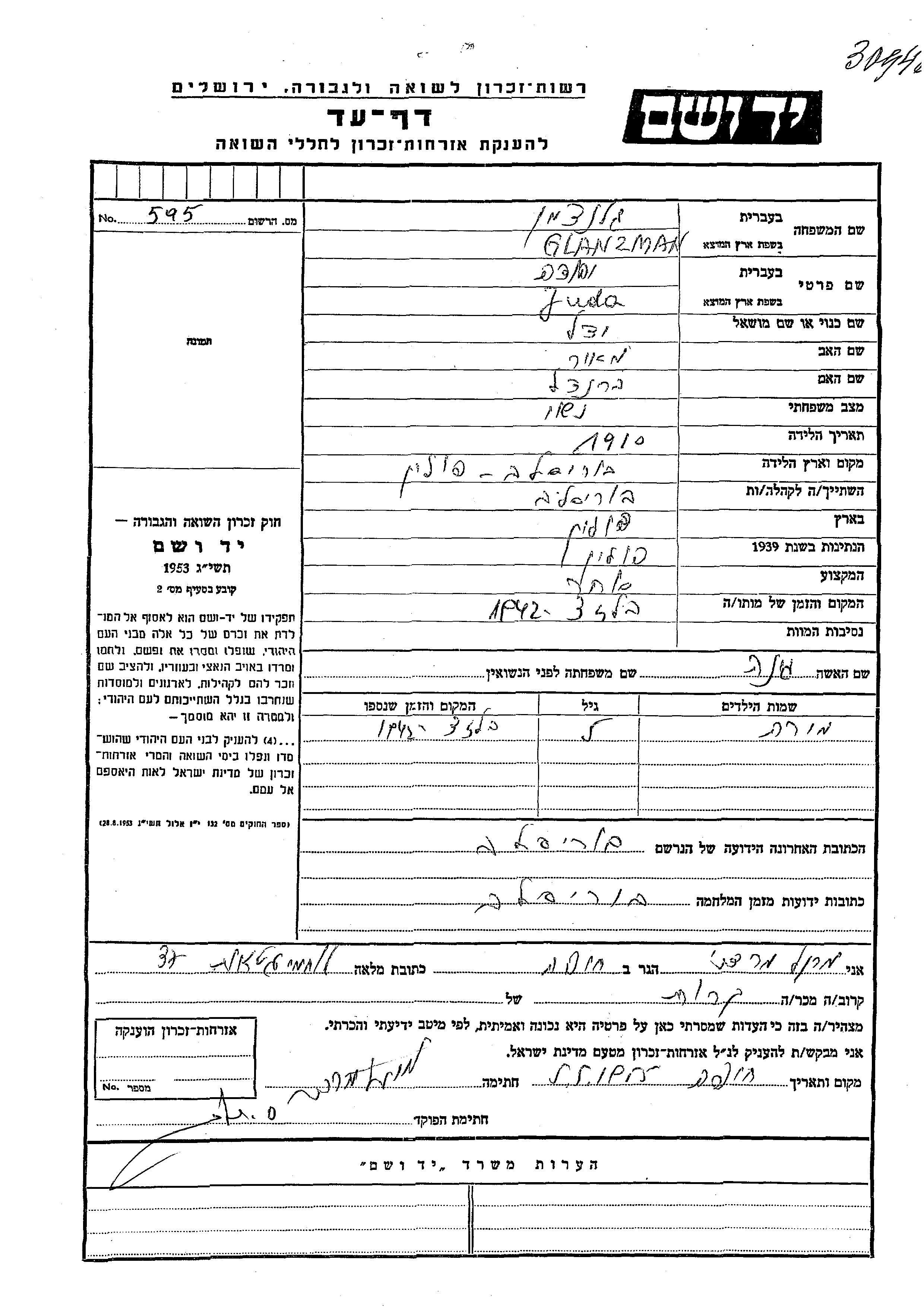 Recherche par lieu de résidence permanente avant la Shoah, ville, village, département, région ou pays.